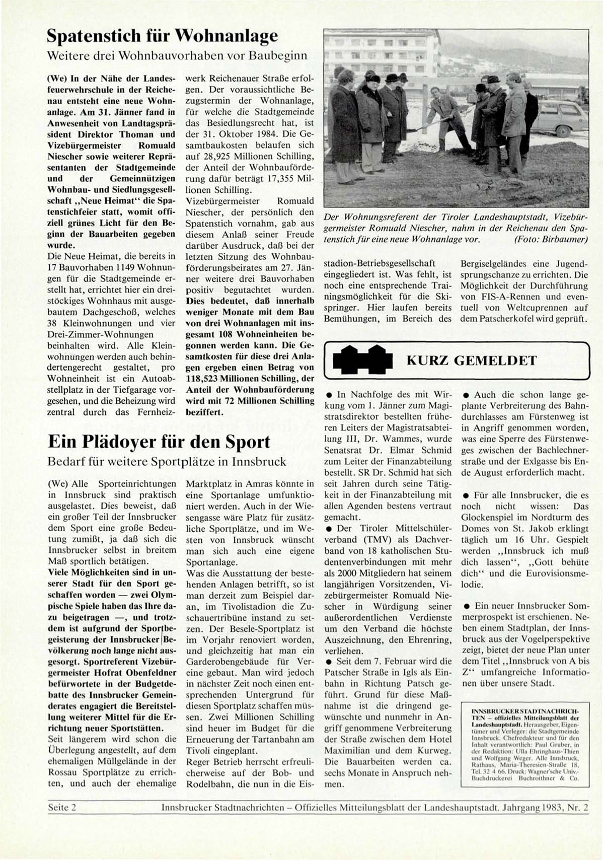 Innsbrucker Stadtnachrichten - Offizielles Mitteilungsblatt der Landeshauptstadt. Jahrgang 1983, Nr. 2