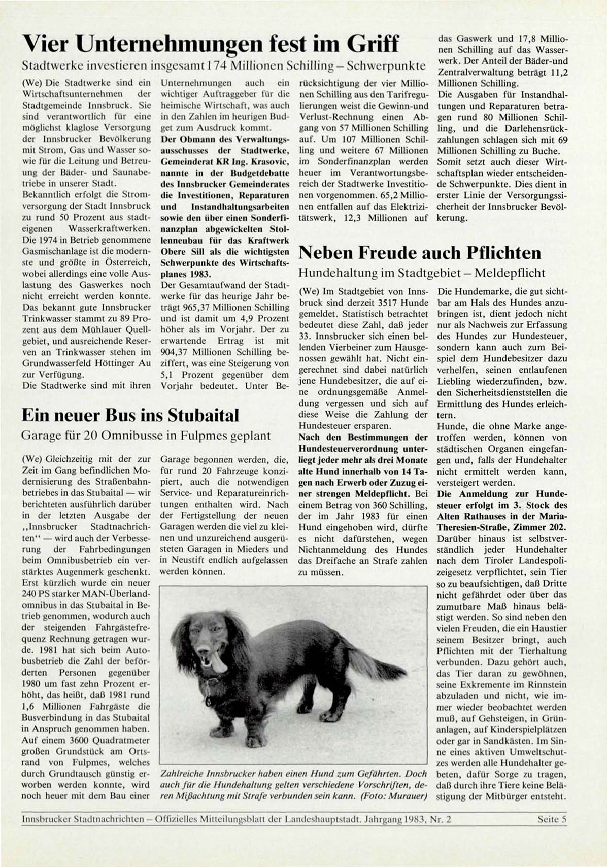Innsbrucker Stadtnachrichten - Offizielles Mitteilungsblatt der Landeshauptstadt. Jahrgang 1983, Nr. 2