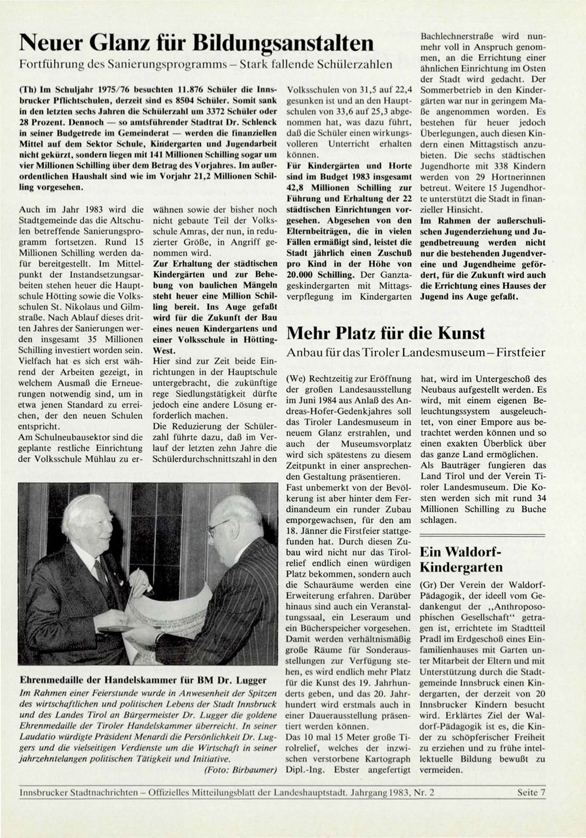 Innsbrucker Stadtnachrichten - Offizielles Mitteilungsblatt der Landeshauptstadt. Jahrgang 1983, Nr. 2