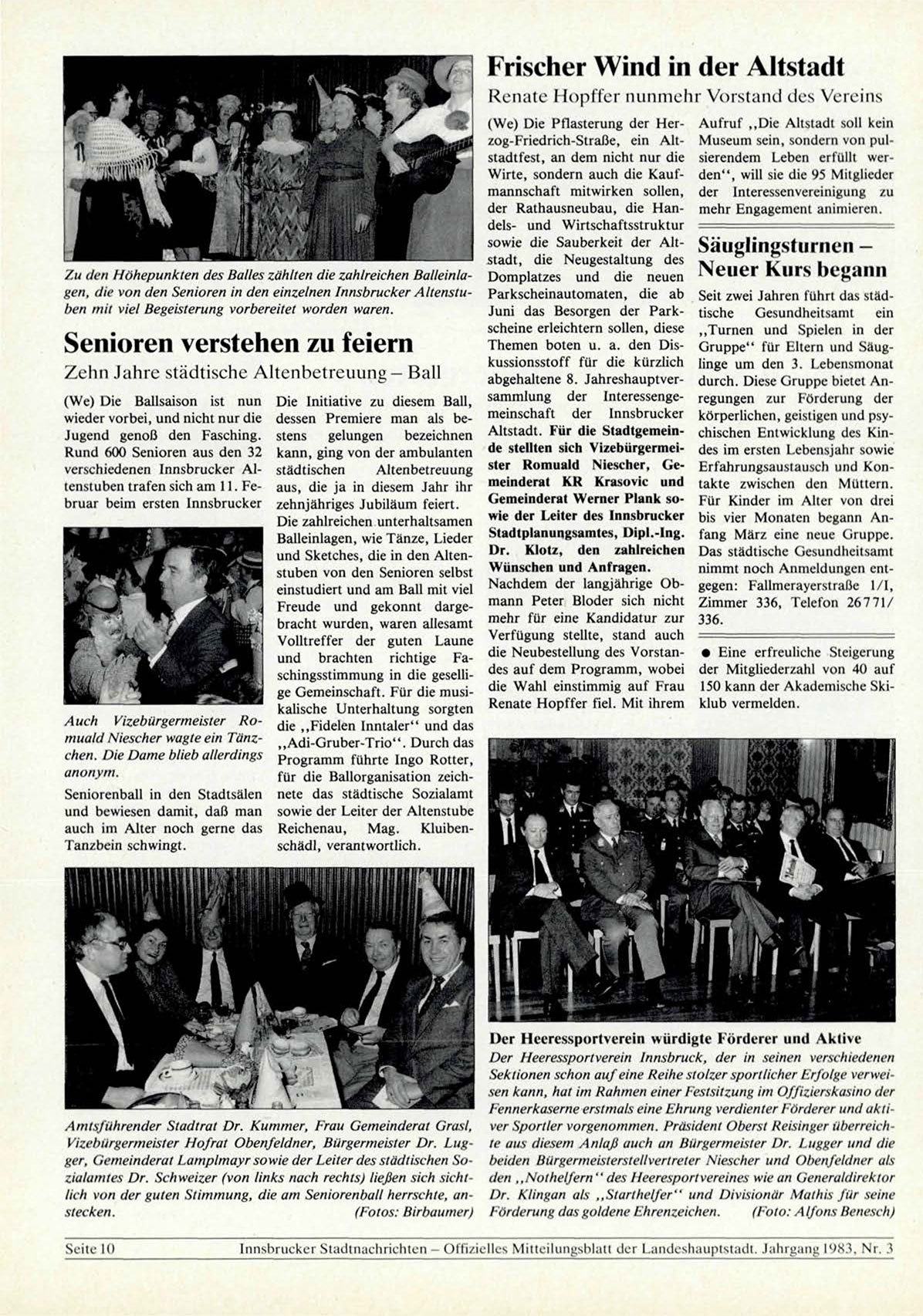 Innsbrucker Stadtnachrichten - Offizielles Mitteilungsblatt der Landeshauptstadt. Jahrgang 1983, Nr. 3