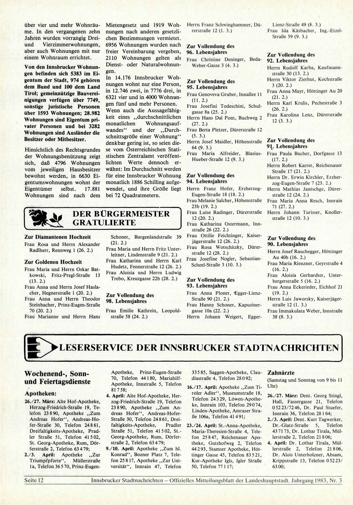 Innsbrucker Stadtnachrichten - Offizielles Mitteilungsblatt der Landeshauptstadt. Jahrgang 1983, Nr. 3