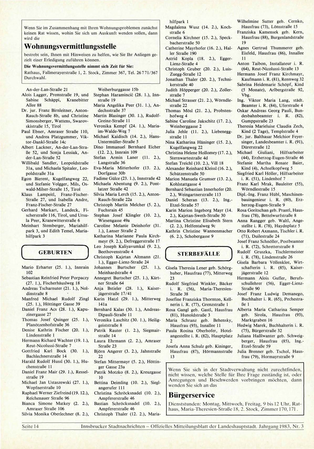 Innsbrucker Stadtnachrichten - Offizielles Mitteilungsblatt der Landeshauptstadt. Jahrgang 1983, Nr. 3