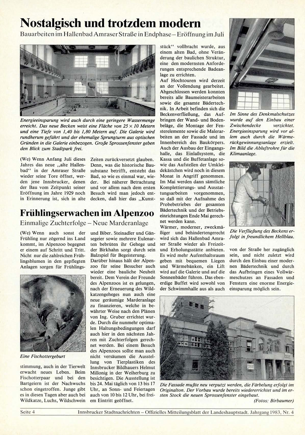 Innsbrucker Stadtnachrichten - Offizielles Mitteilungsblatt der Landeshauptstadt. Jahrgang 1983, Nr. 4