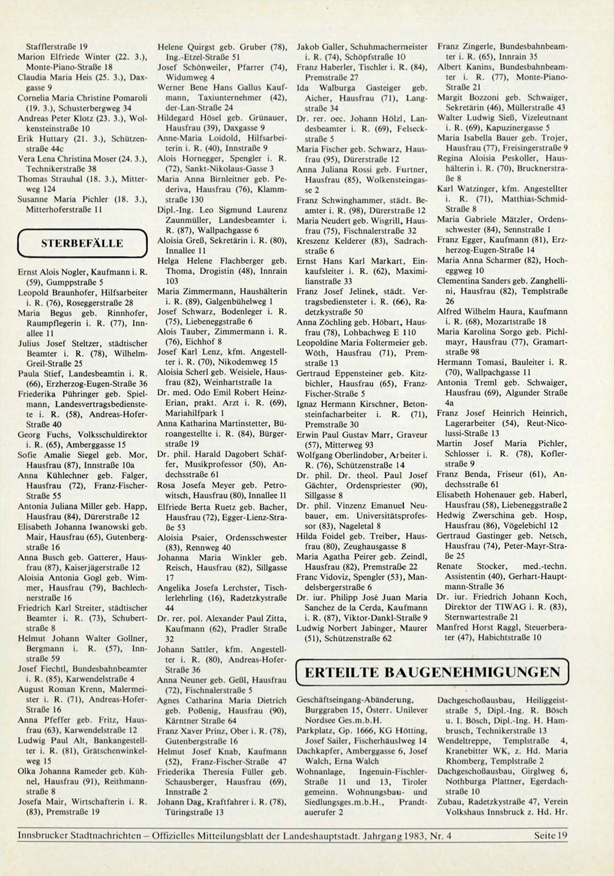 I n n s h r u c k e r S t a d t n a c h r i c h t e n - O f f i z i e l l e s M i t t e i l u n g s b l a t t d e r L a n d e s h a u p t s t a d t . J a h r g a n g 1983, N r . 4