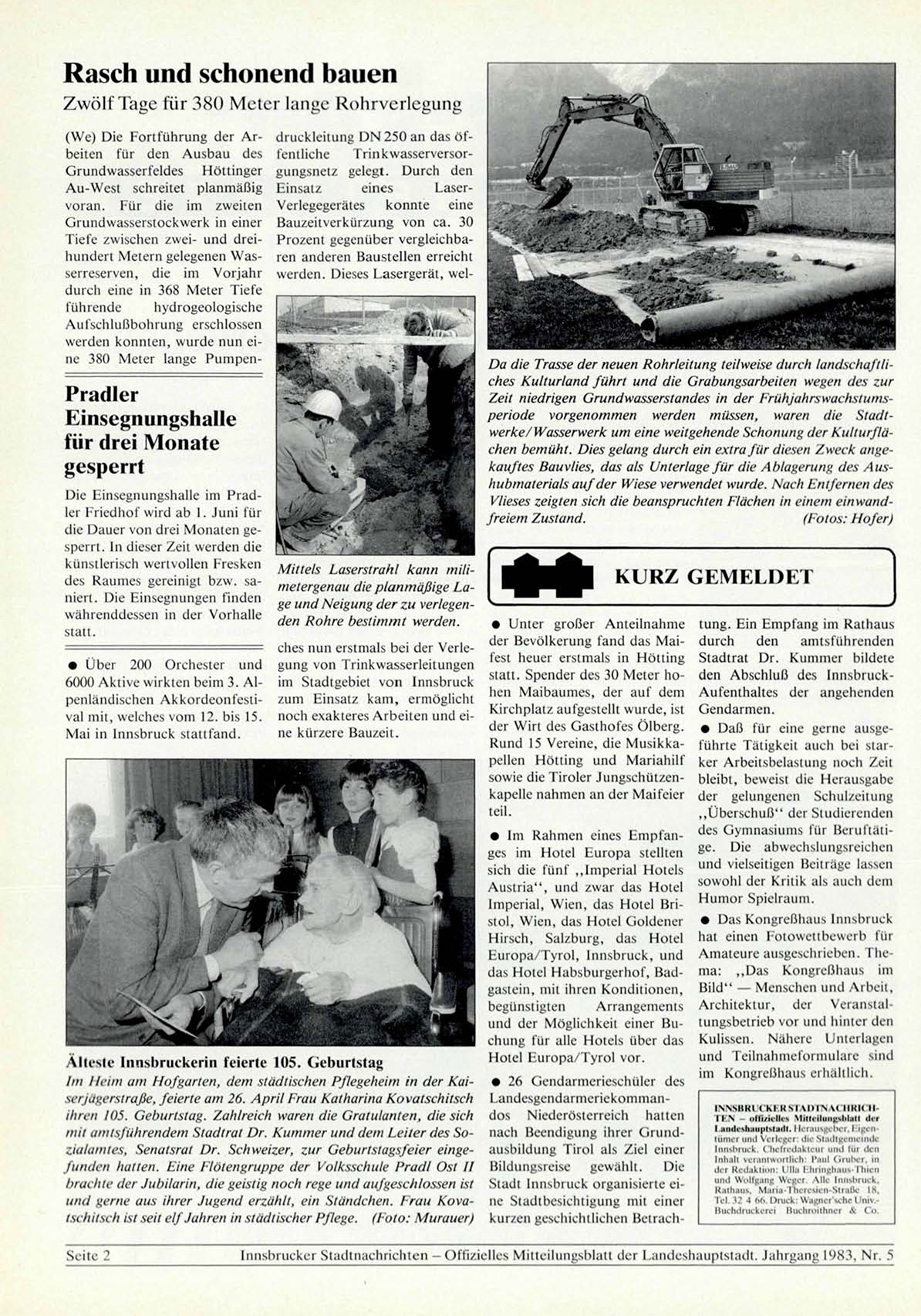 Innsbrucker Stadtnachrichten -Offizielles Mitteilungsblatt der Landeshauptstadt. Jahrgang 1983, Nr. 5