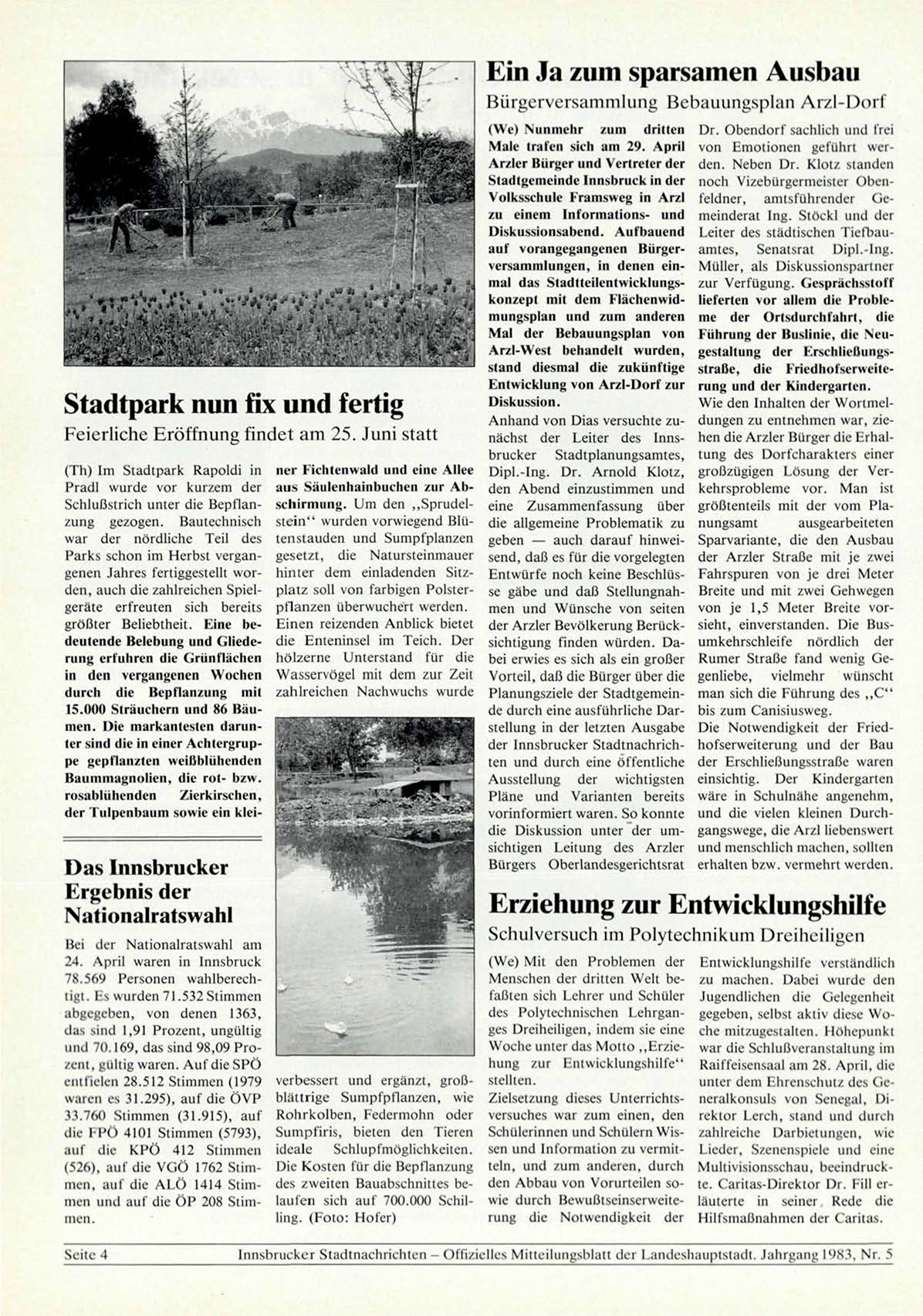 Innsbrucker Stadtnachrichten - Offizielles Mitteilungsblatt der Landeshauptstadt. Jahrgang 1983, Nr. 5