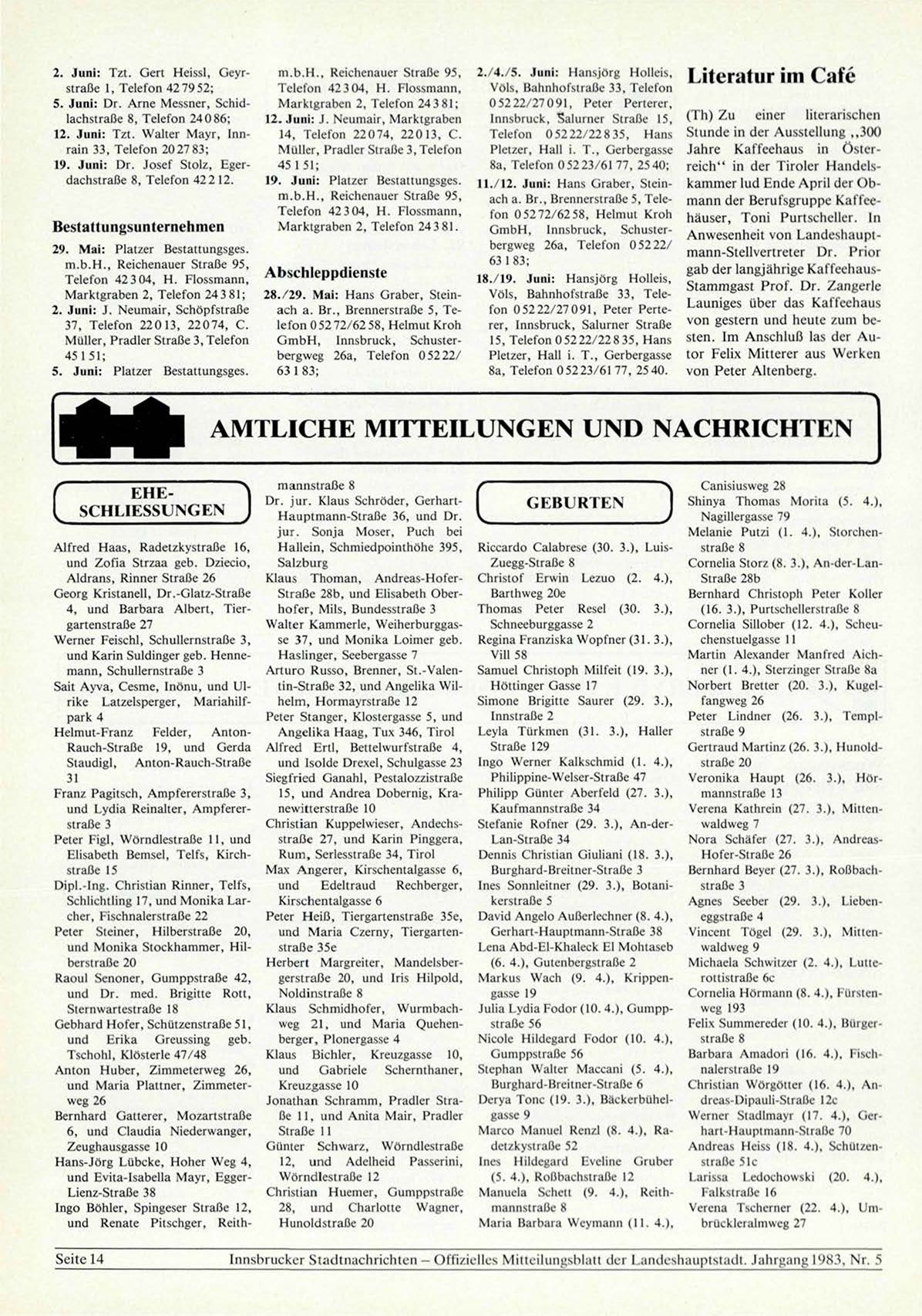 Innsbrucker Stadtnachrichten - Offizielles Mitteilungsblatt der Landeshauptstadt. Jahrgang 1983, Nr. 5