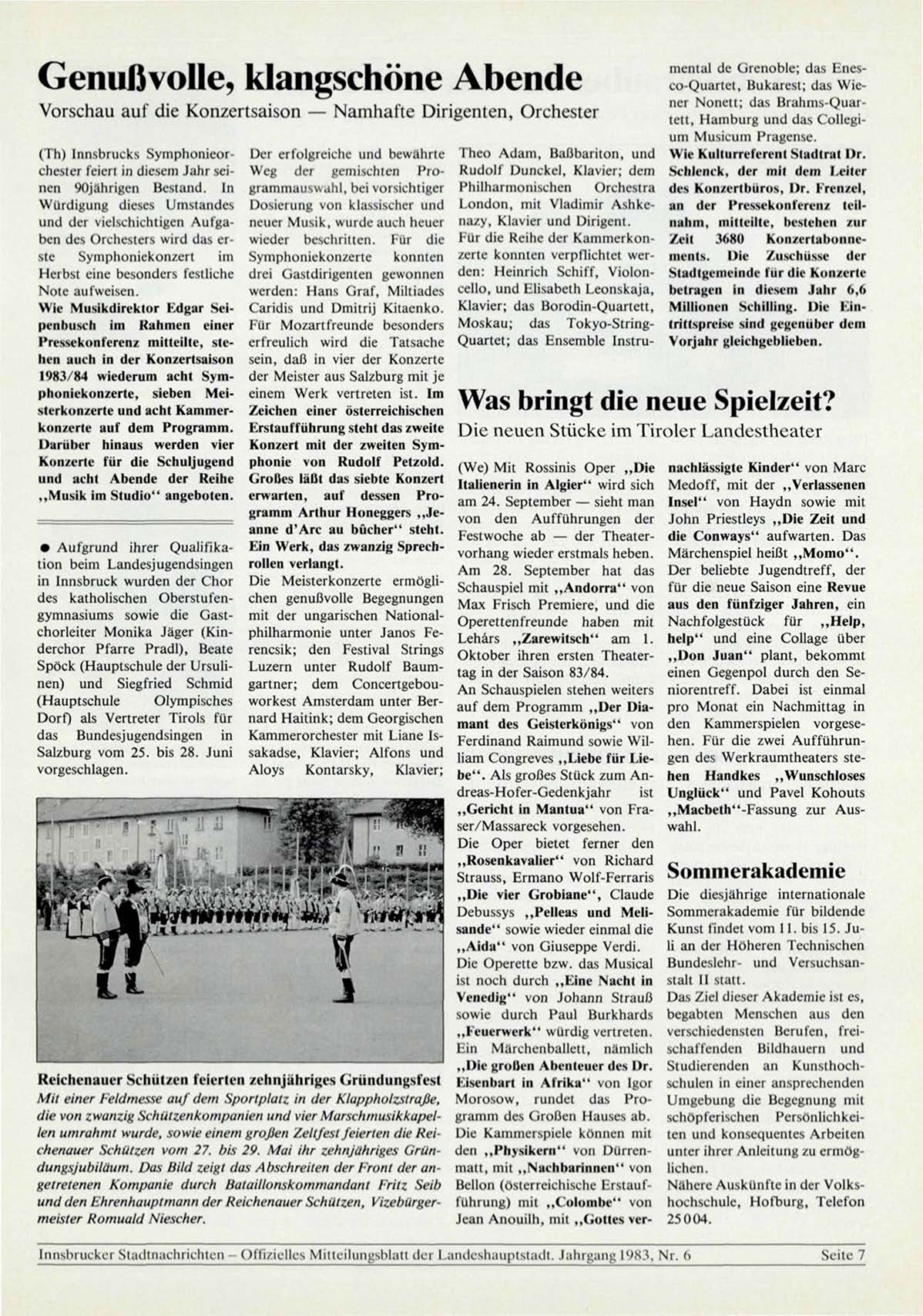 Innsbrucker Stadtnachrichten - Offizielles Mitteilungsblatt der Landeshauptstadt. Jahrgang 1983, Nr. 6