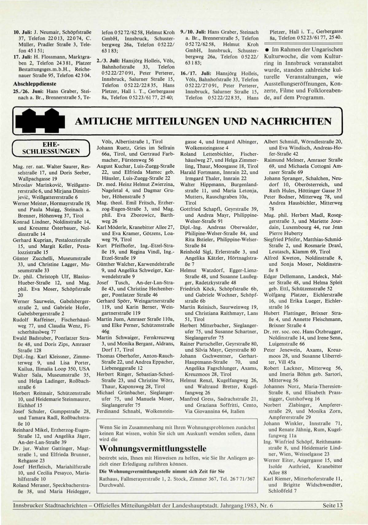 Innsbrucker Stadtnachrichten - Offizielles Mitteilungsblatt der Landeshauptstadt. Jahrgang 1983, Nr. 6