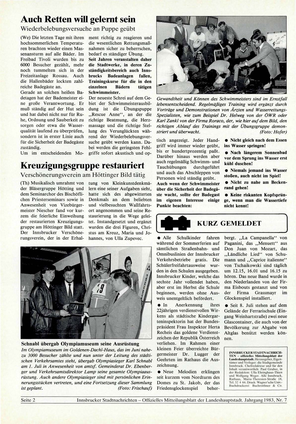 Innsbrucker Stadtnachrichten - Offizielles Mitteilungsblatt der Landeshauptstadt. Jahrgang 19S3, Nr. 7