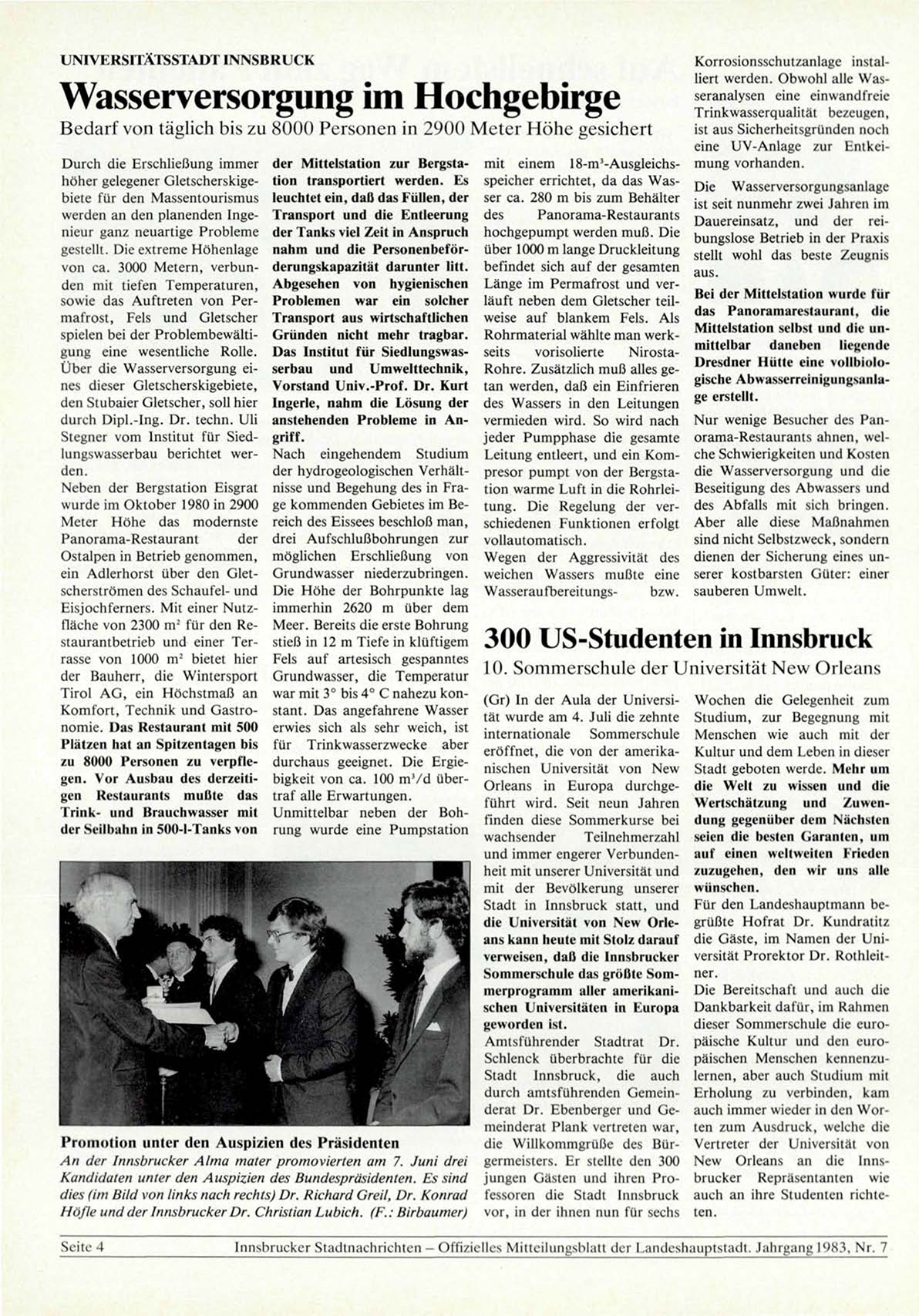 Innsbrucker Stadtnachrichten - Offizielles Mitteilungsblatt der Landeshauptstadt. Jahrgang 1983, Nr. 7
