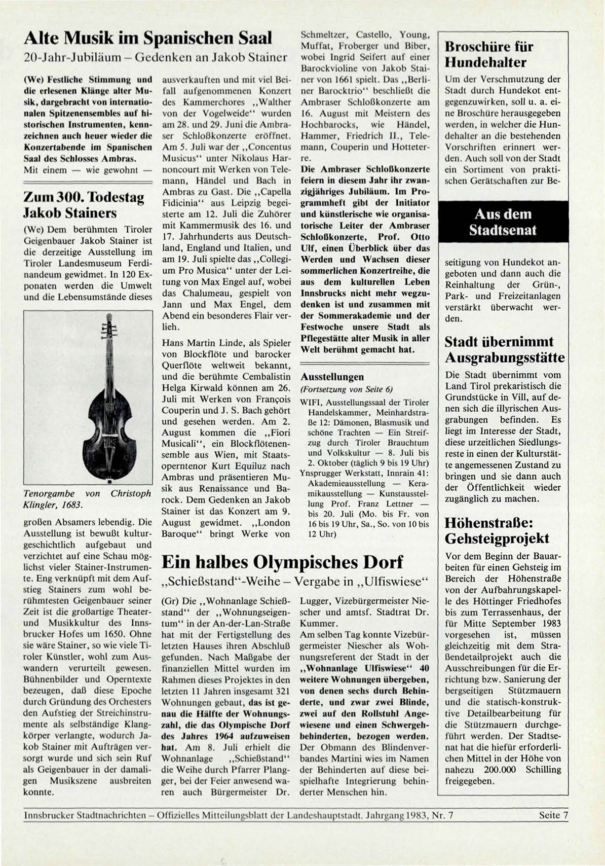 Innsbrucker Stadtnachrichten - Offizielles Mitteilungsblatt der Landeshauptstadt. Jahrgang 1983, Nr. 7