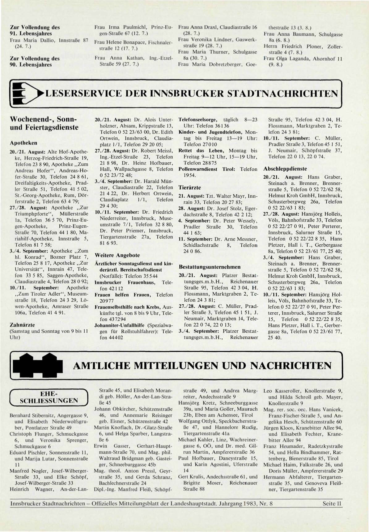 Innshruckcr Stadtnachrichten - Offizielles Mitteilungsblatt der Landeshauptstadt. Jahrgang 1983, Nr. 8