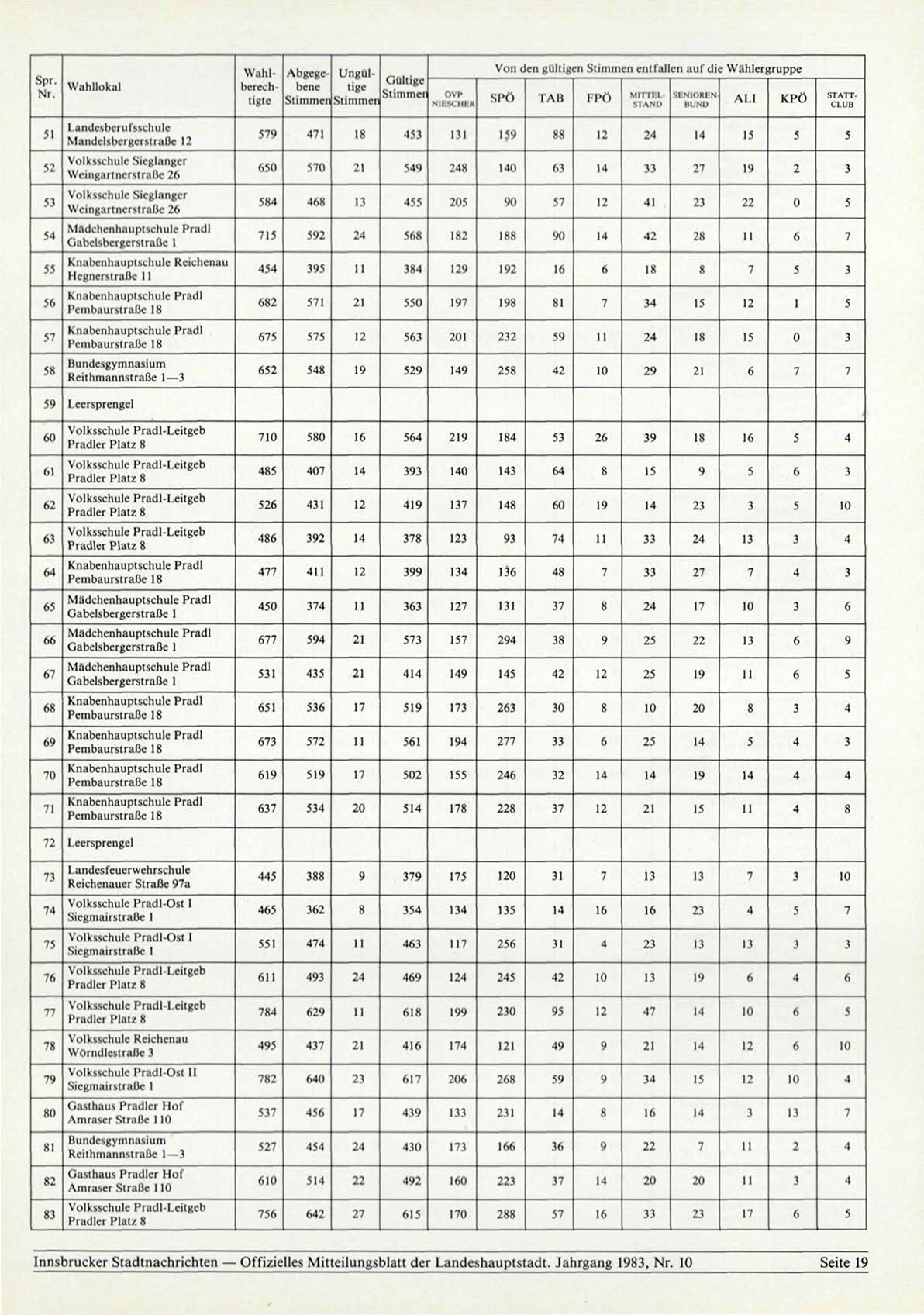Innsbrucker Stadtnachrichten — Offizielles Mitteilungsblatt der Landeshauptstadt. Jahrgang 1983, Nr. 10