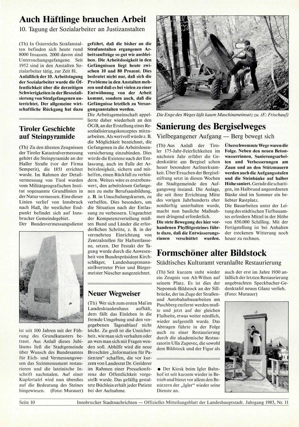 Innsbrucker Stadtnachrichten — Offizielles Mitteilungsblatt der Landeshauptstadt. Jahrgang 1983, Nr. 11