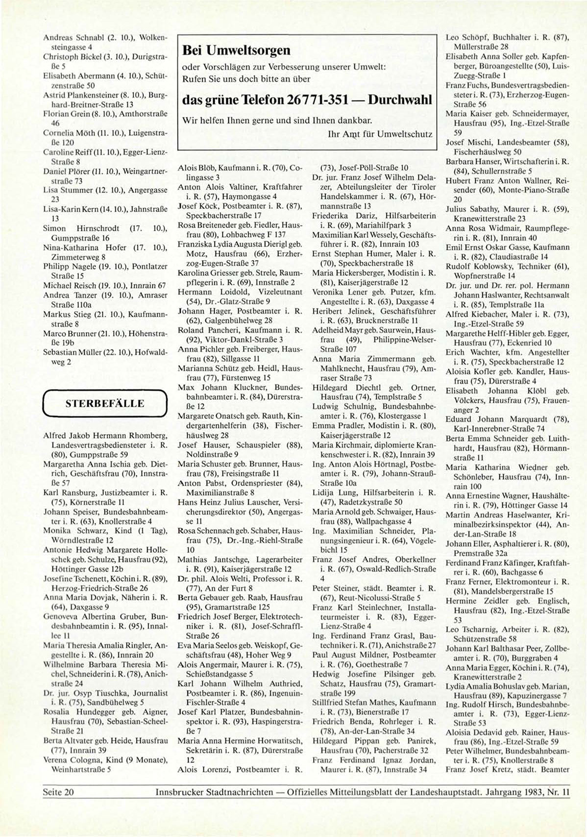 Innsbrucker Stadtnachrichten — Offizielles Mitteilungsblatt der Landeshauptstadt. Jahrgang 1983, Nr. 11