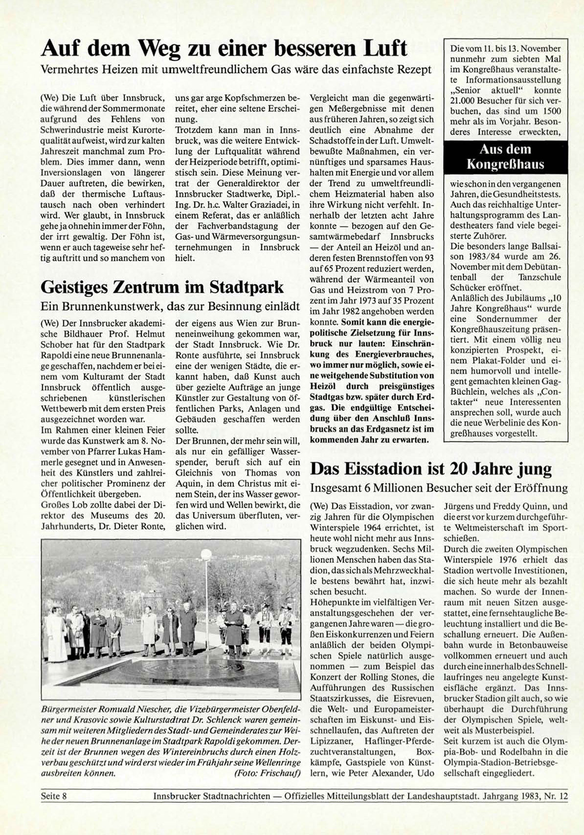 Innsbrucker Stadtnachrichten — Offizielles Mitteilungsblatt der Landeshauptstadt. Jahrgang 1983, Nr. 12