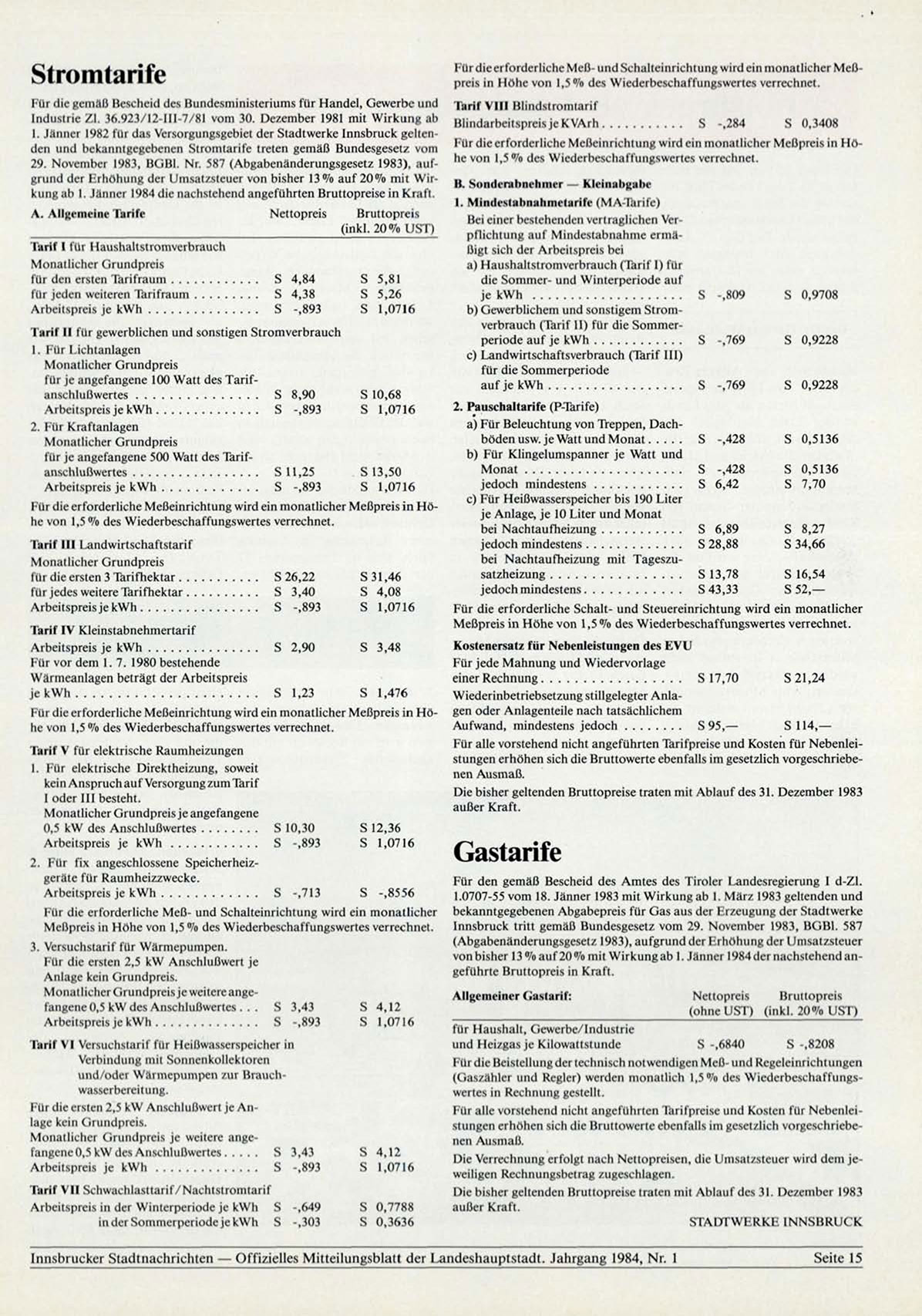 VOn bisher 1 3 % a u f 2 0 % mit W i r k u n g a b I. J ä n n e r 1984 der n a c h s t e h e n d a n -