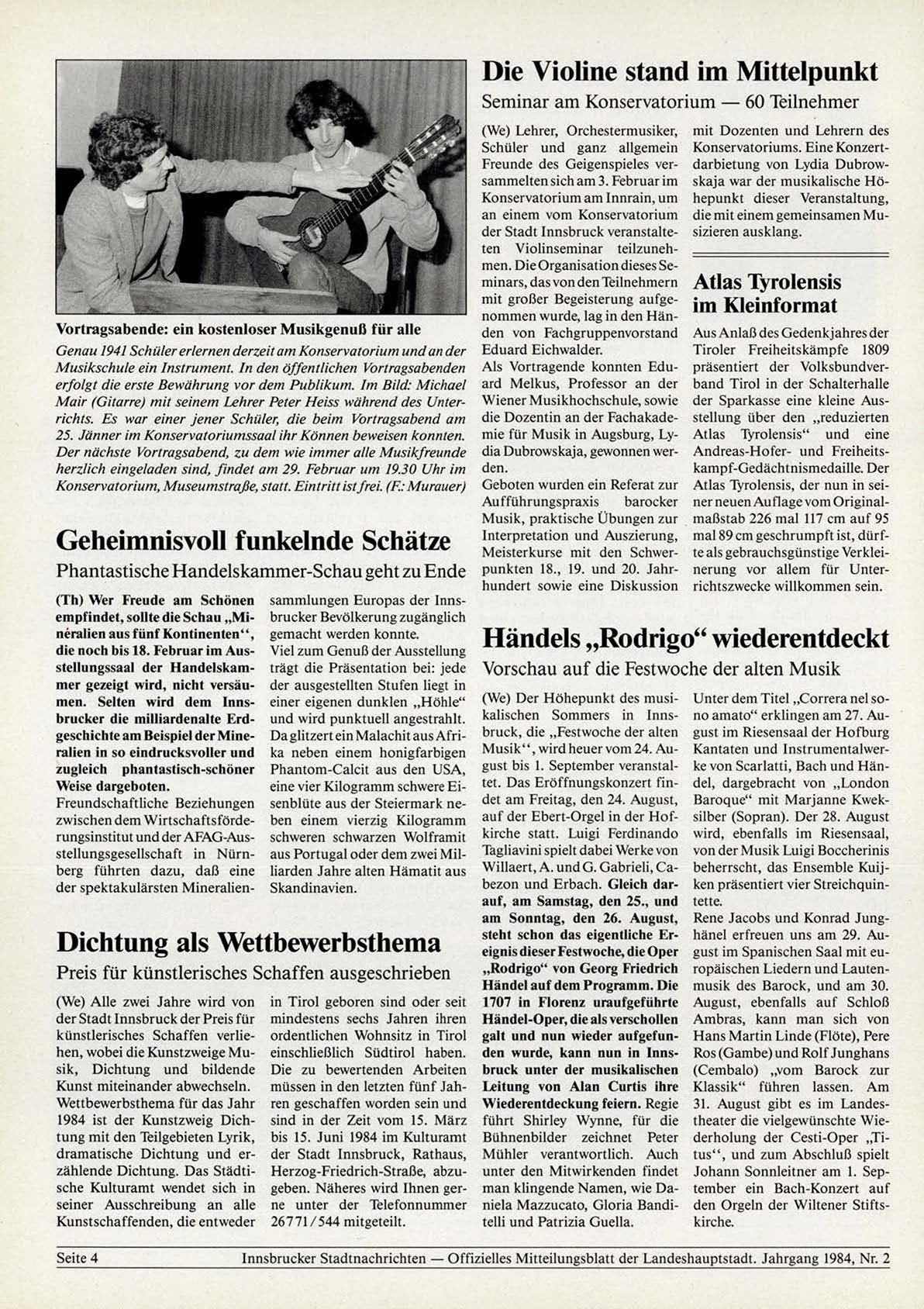 Innsbrucker Stadtnachrichten — Offizielles Mitteilungsblatt der Landeshauptstadt. Jahrgang 1984, Nr. 2