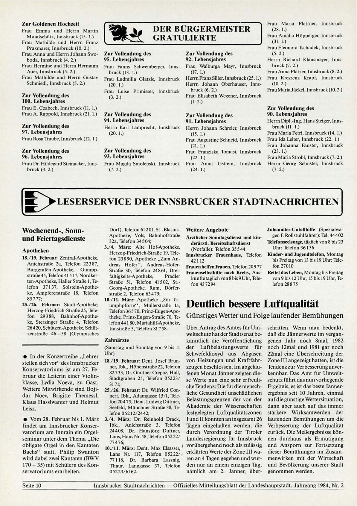 Innsbrucker Stadtnachrichten — Offizielles Mitteilungsblatt der Landeshauptstadt. Jahrgang 1984, Nr. 2