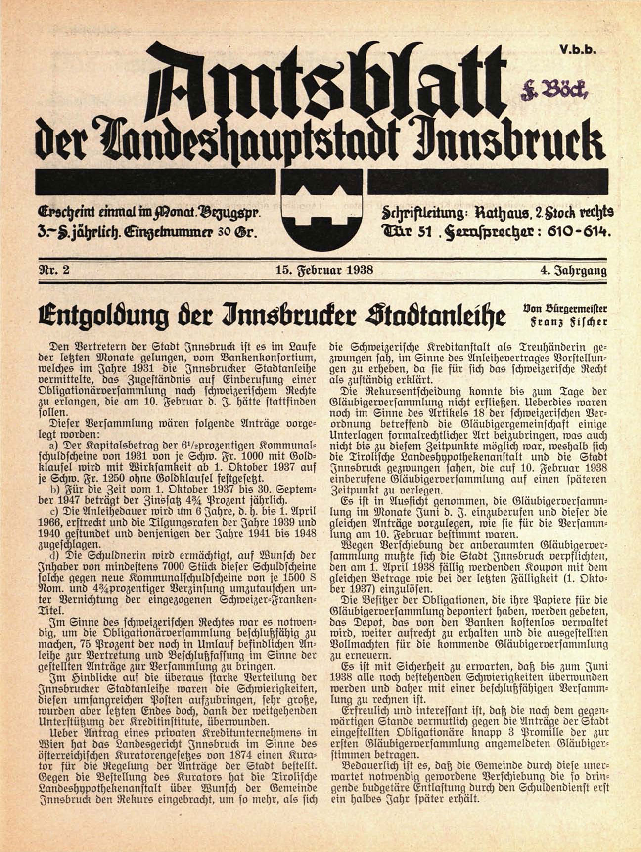 Innsbrucker Stadtanleihe waren die Schwierigkeiten,
