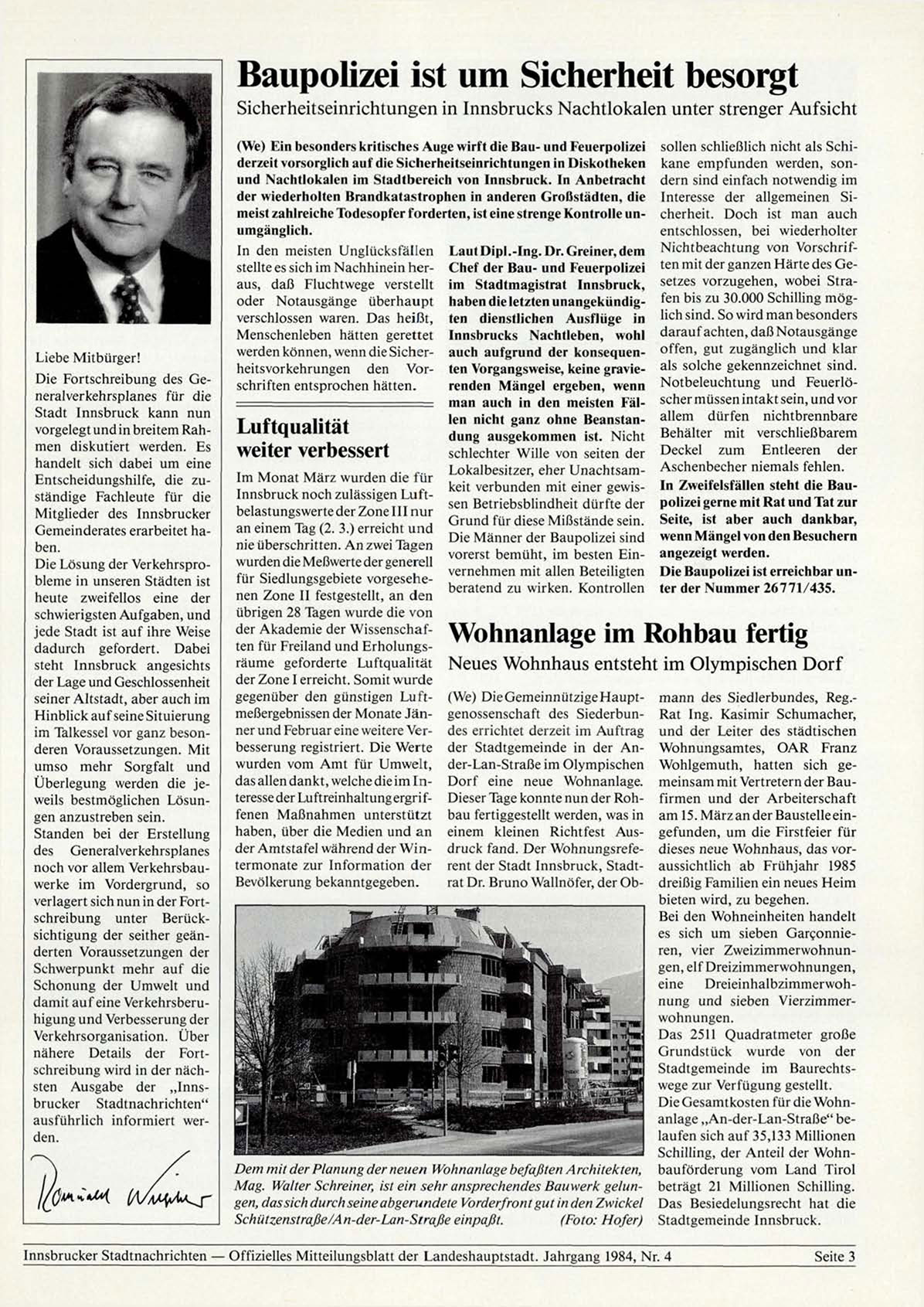Innsbrucker Stadtnachrichten — Offizielles Mitteilungsblatt der Landeshauptstadt. Jahrgang 1984, Nr. 4