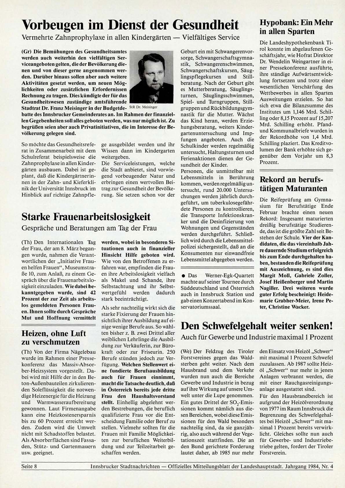 Innsbrucker Stadtnachrichten — Offizielles Mitteilungsblatt der Landeshauptstadt. Jahrgang 1984, Nr. 4