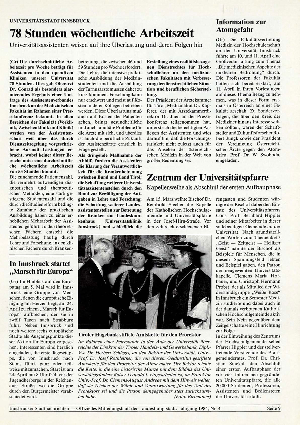 Innsbrucker Stadtnachrichten — Offizielles Mitteilungsblatt der Landeshauptstadt. Jahrgang 1984, Nr. 4