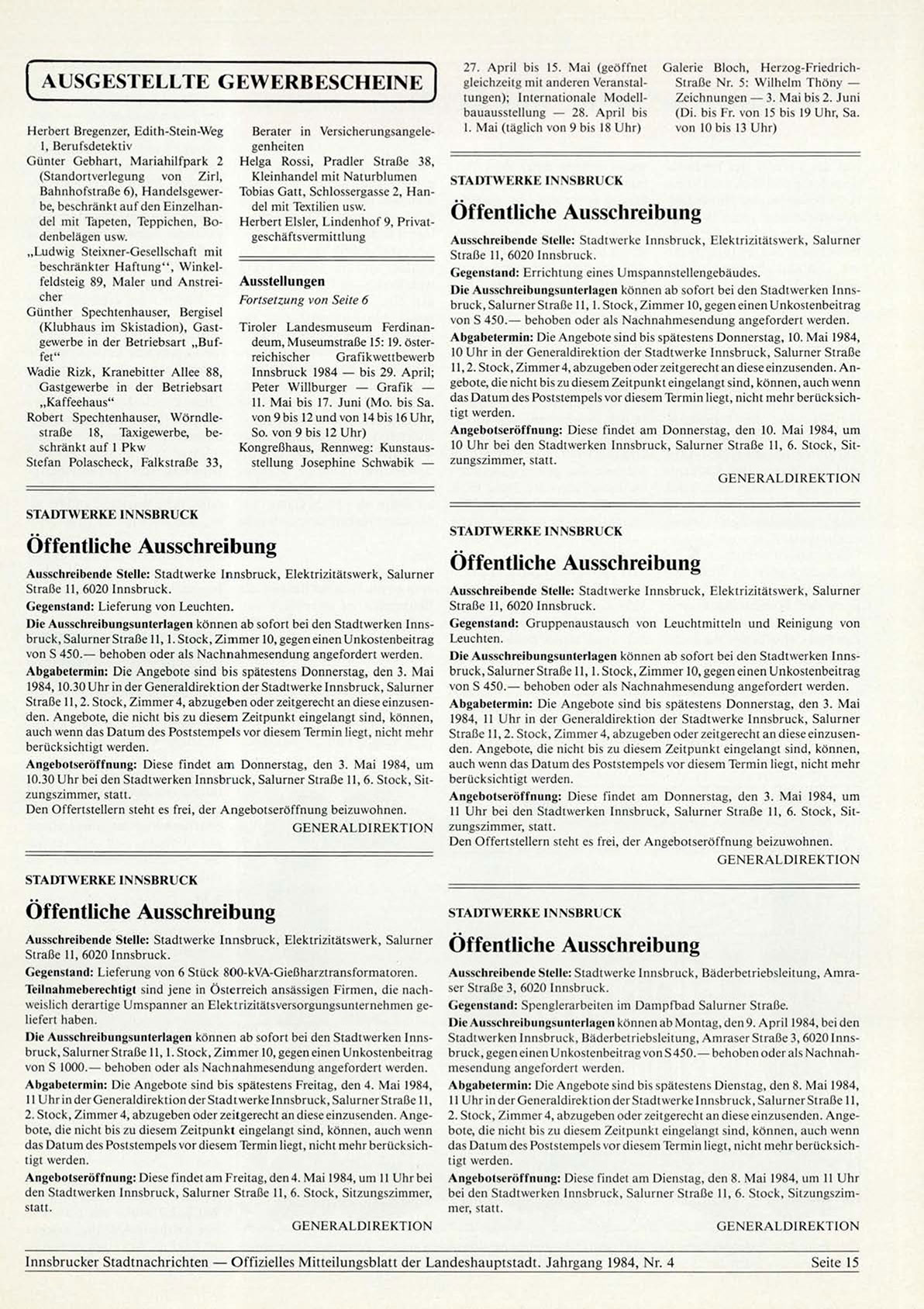 Innsbrucker Stadtnachrichten — Offizielles Mitteilungsblatt der Landeshauptstadt. Jahrgang 1984, Nr. 4