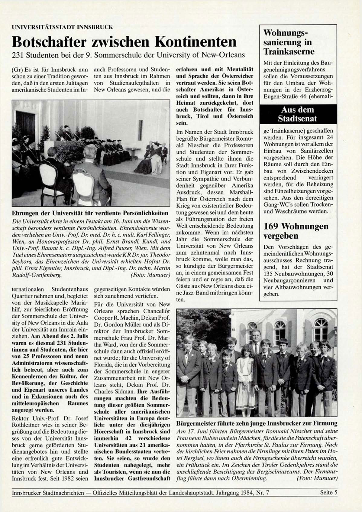 Innsbrucker Stadtnachrichten — Offizielles Mitteilungsblatt der Landeshauptstadt. Jahrgang 1984, N r . 7