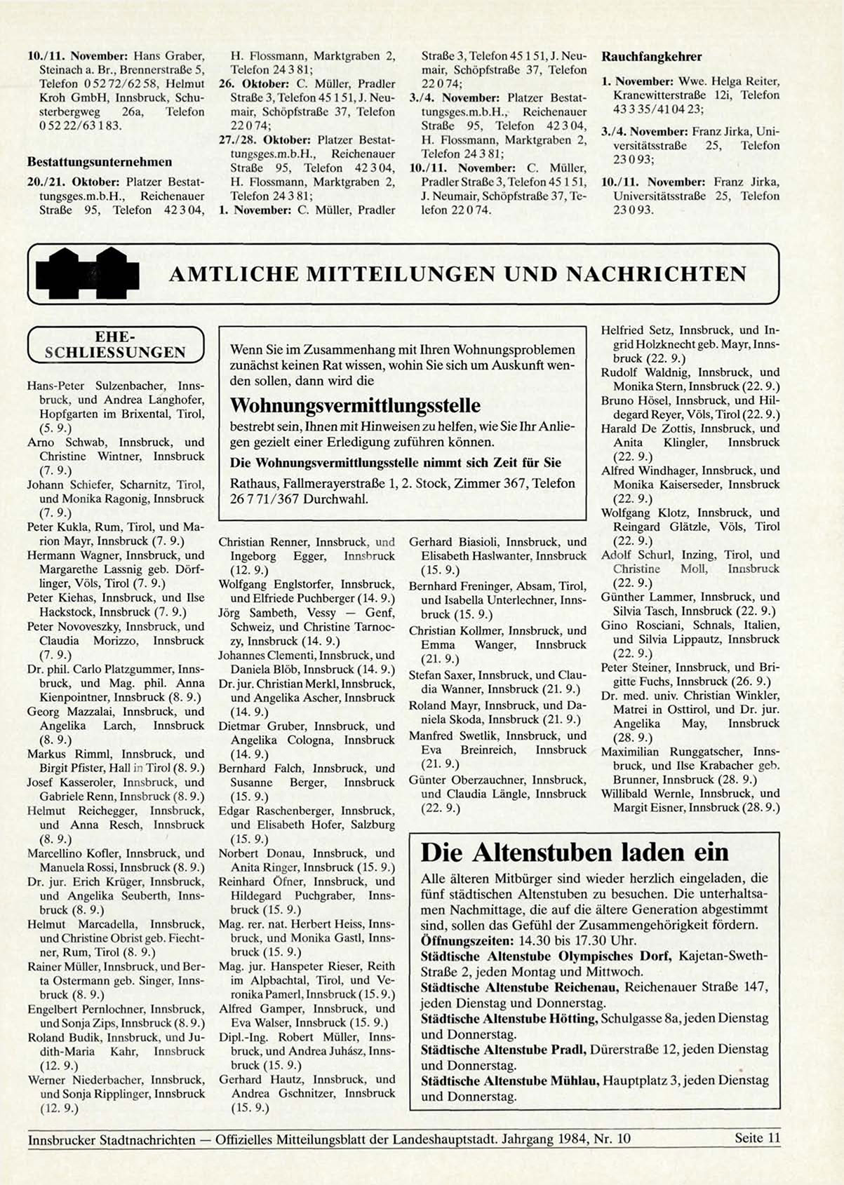 Innsbrucker Stadtnachrichten — Offizielles Mitteilungsblatt der Landeshauptstadt. Jahrgang 1984, Nr. 10