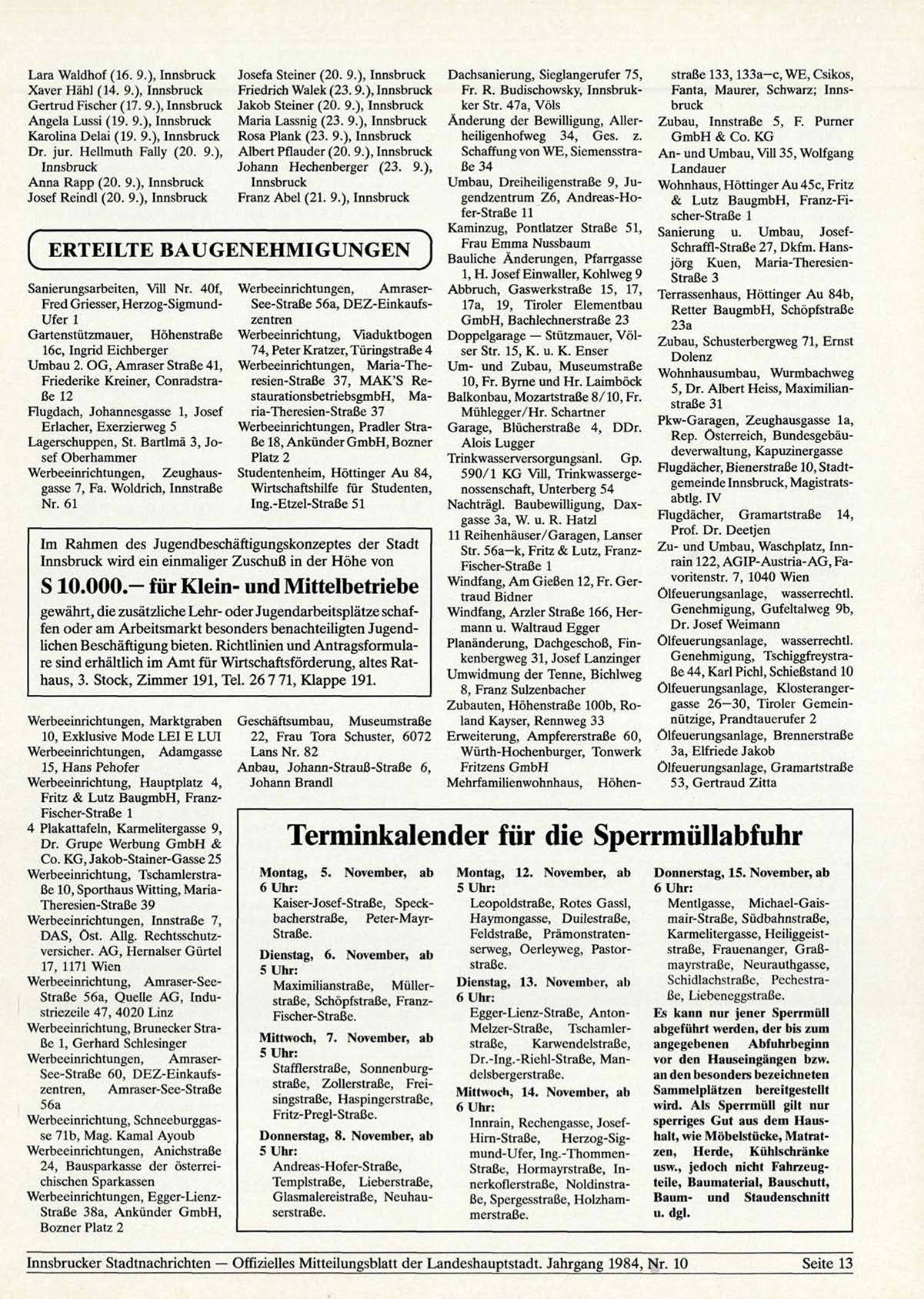 Innsbrucker Stadtnachrichten — Offizielles Mitteilungsblatt der Landeshauptstadt. Jahrgang 1984, Nr. 10