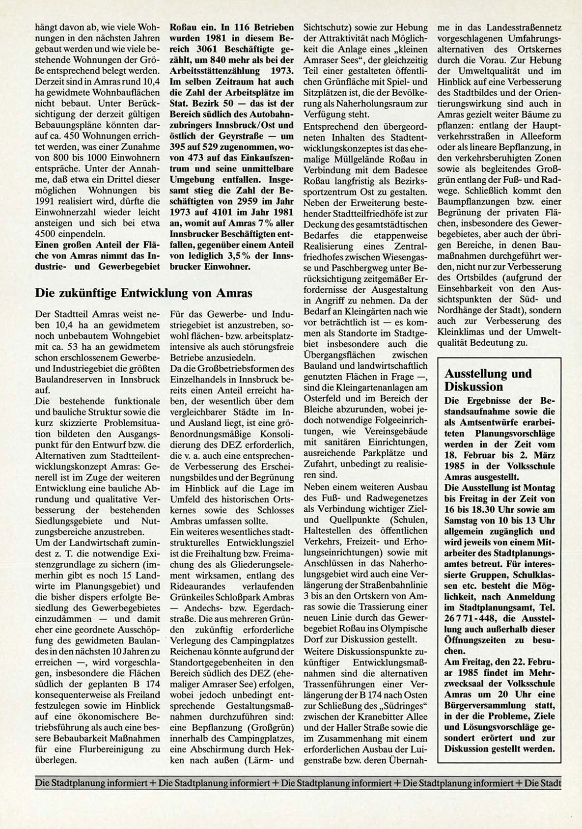 wicklungskonzept Amras: Ge- de Verbesserung des Erschei- Zufahrt, unbedingt zu realisienerell ist im Zuge der weiteren nungsbildes und der Begrünung ren sind.