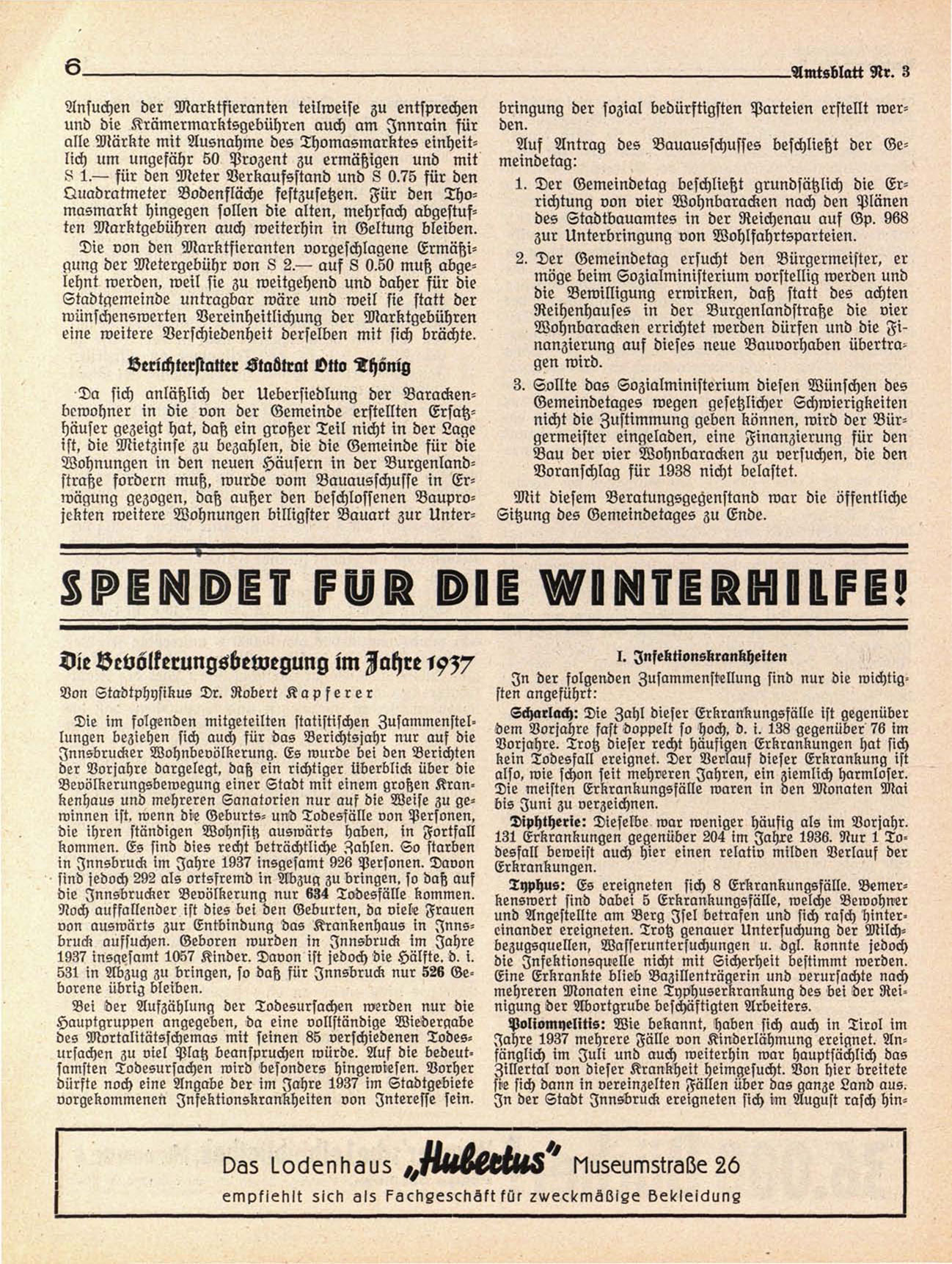 in Innsbruck im Jahre 1937 insgesamt 926 Personen. Davon