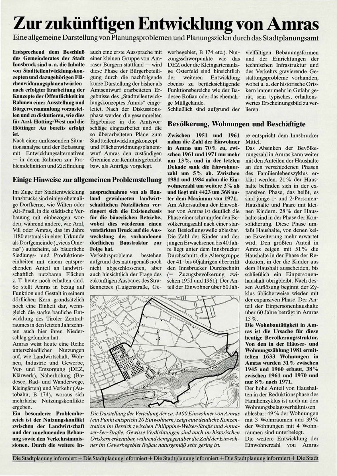 Amtsentwurf erarbeiteten Ergebnisse des „Stadtteilentwicklungskonzeptes Amras" eingeleitet. Nach der Diskussionsphase werden die gesammelten