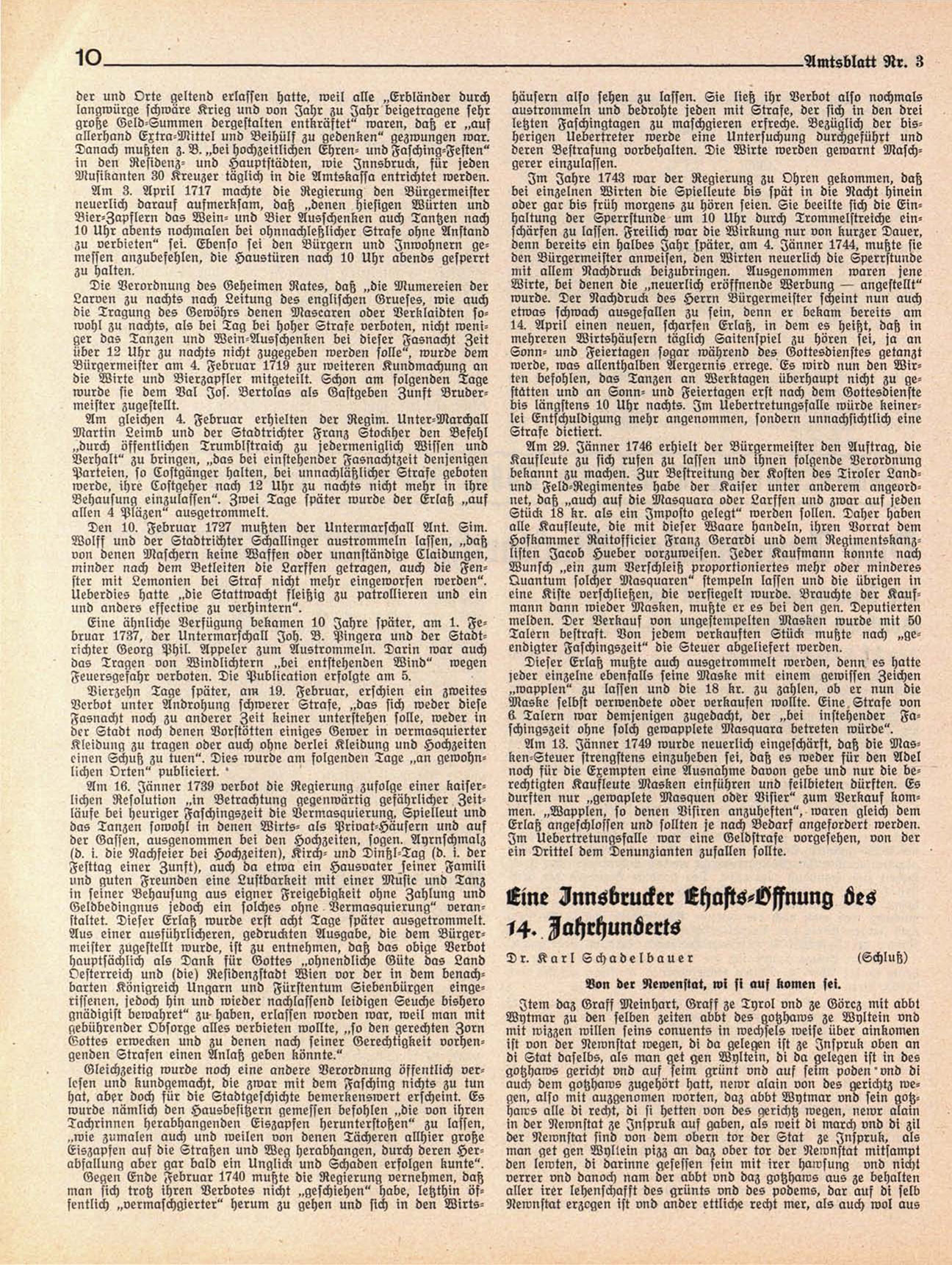 Gleichzeitig wurde noch eine andere Verordnung öffentlich verlesen und kundgemacht, die zwar mit dem Fasching nichts zu tun