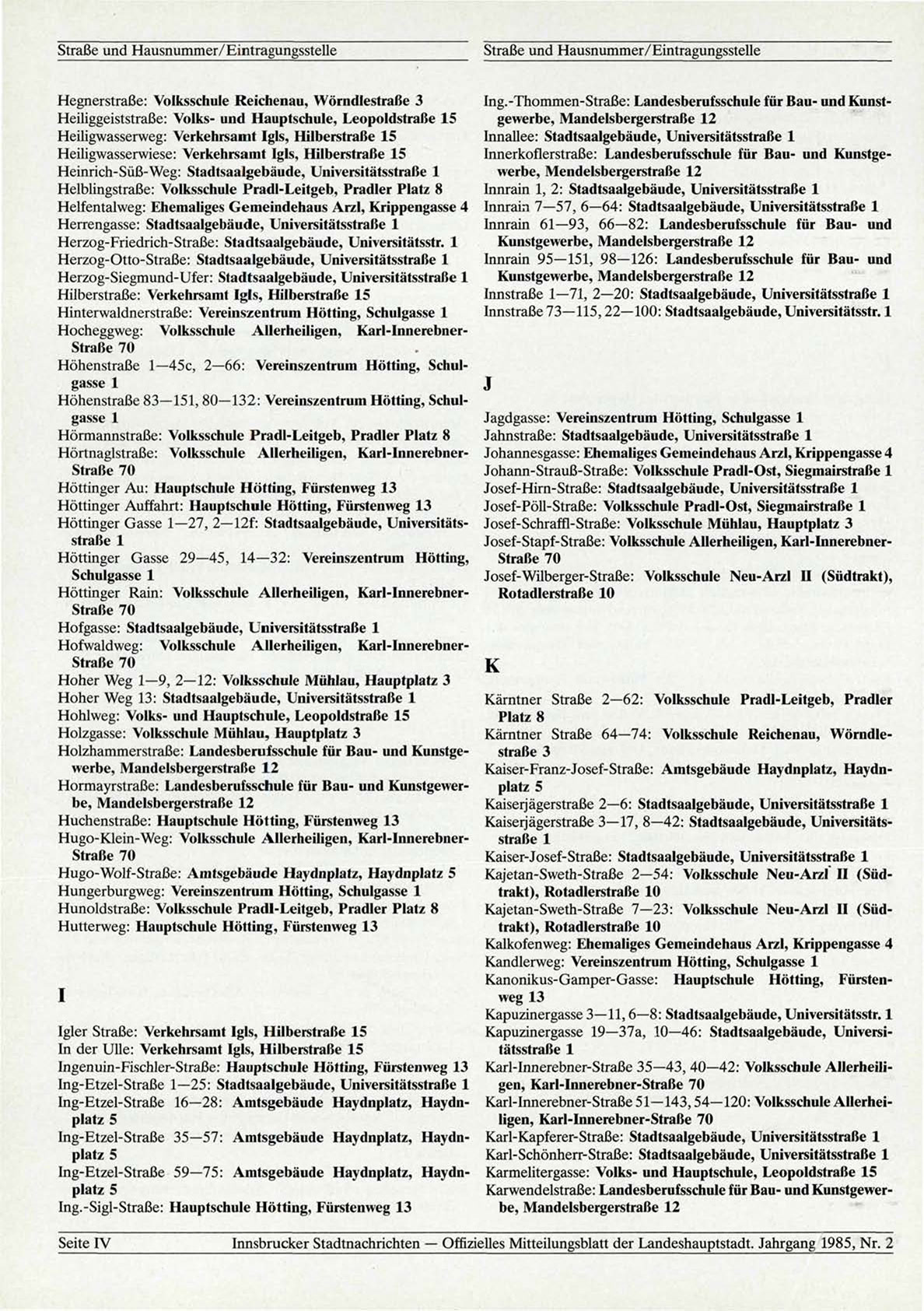 Innsbrucker Stadtnachrichten — Offizielles Mitteilungsblatt der Landeshauptstadt. Jahrgang 1985, Nr. 2