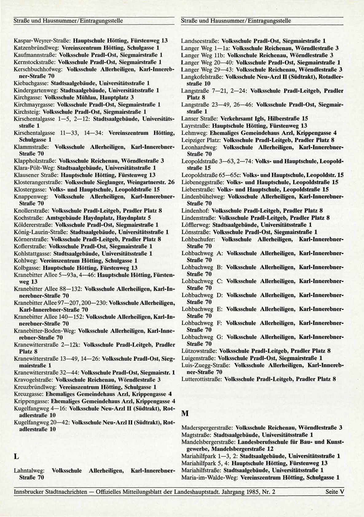Innsbrucker Stadtnachrichten — Offizielles Mitteilungsblatt der Landeshauptstadt. Jahrgang 1985, Nr. 2