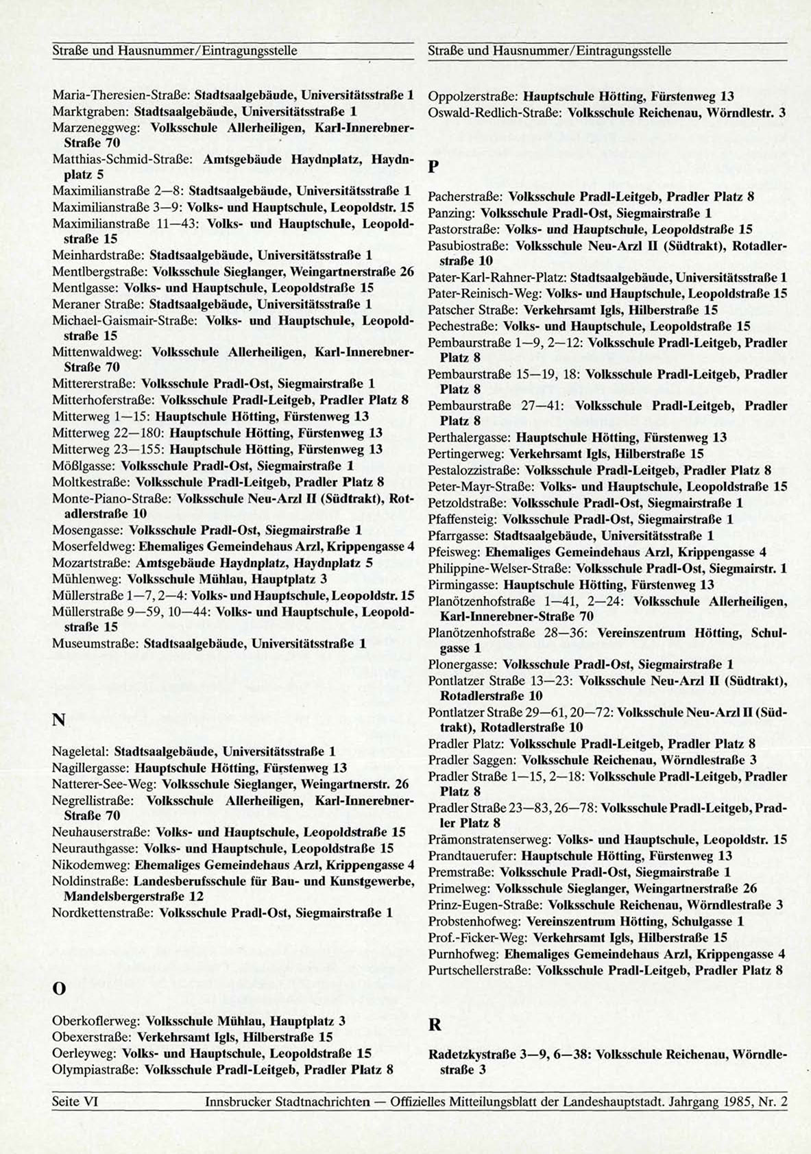 Innsbrucker Stadtnachrichten — Offizielles Mitteilungsblatt der Landeshauptstadt. Jahrgang 1985, Nr. 2