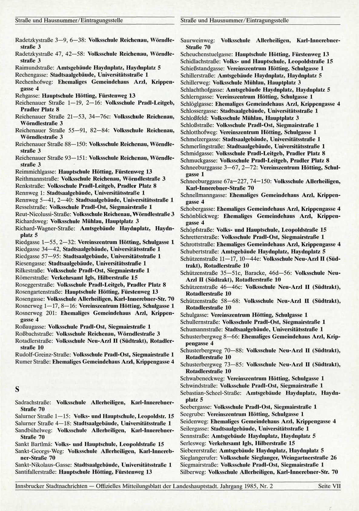 Innsbrucker Stadtnachrichten — Offizielles Mitteilungsblatt der Landeshauptstadt. Jahrgang 1985, Nr. 2