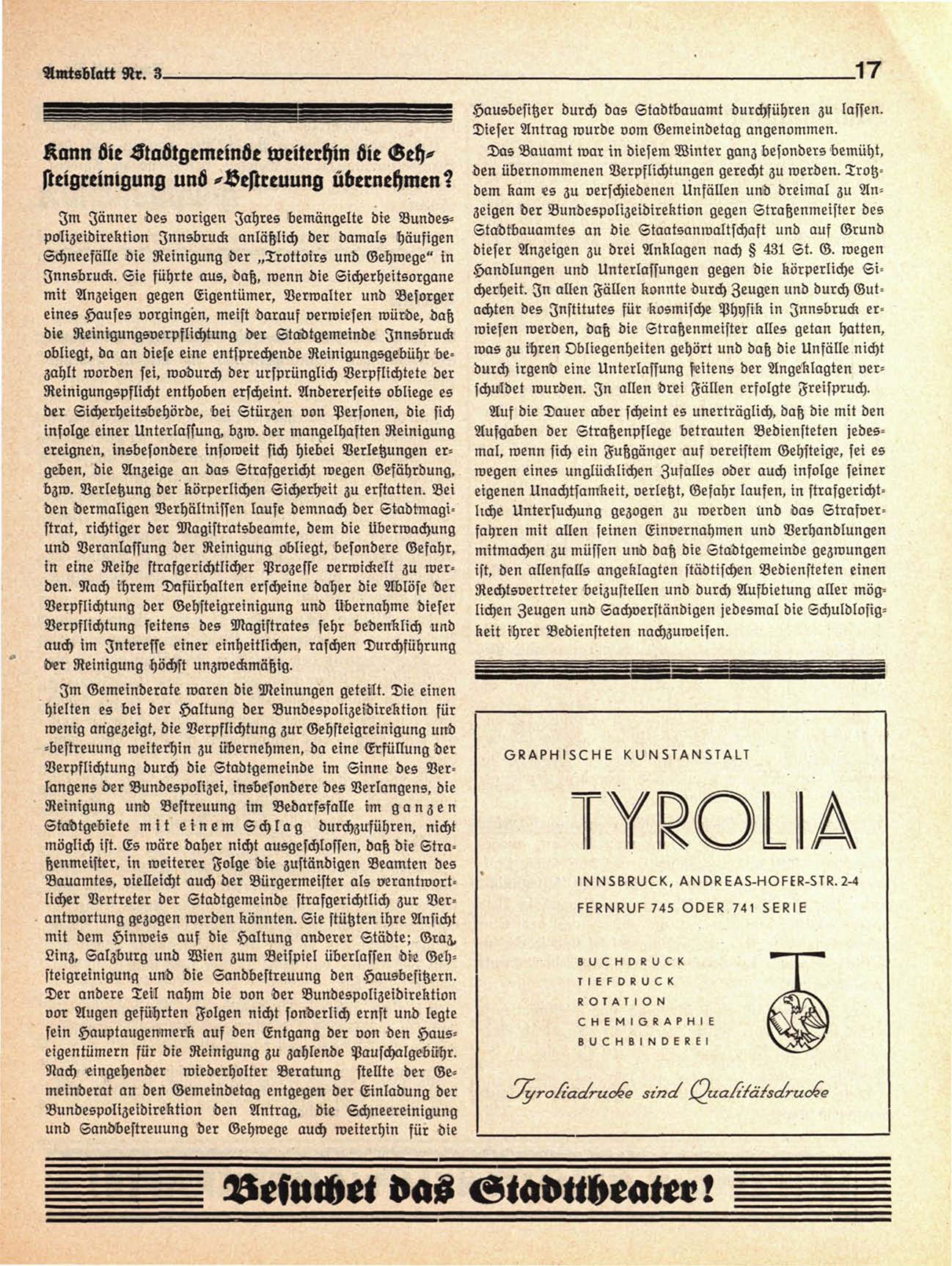 die Reinigungsverpflichtung der Stadtgemeinde Innsbruck