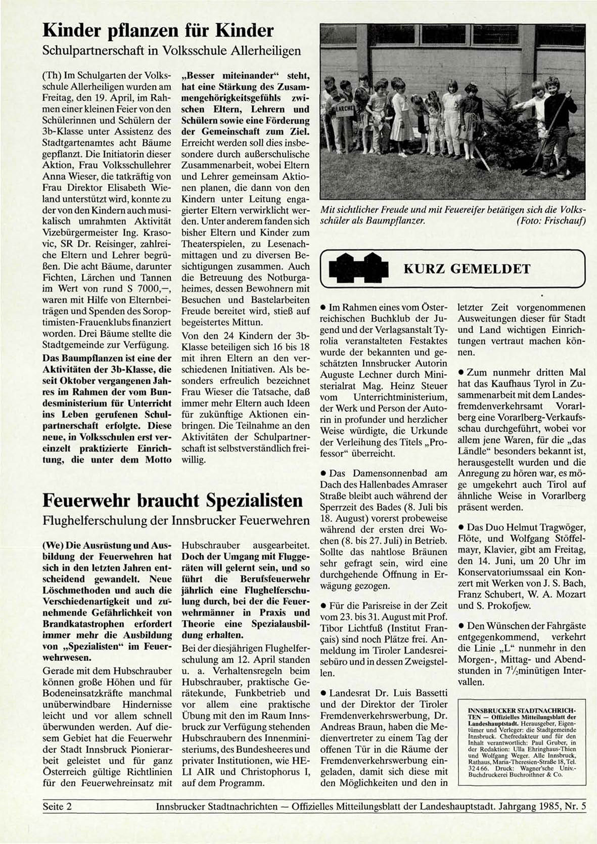 Innsbrucker Stadtnachrichten — Offizielles Mitteilungsblatt der Landeshauptstadt. Jahrgang 1985, Nr. 5