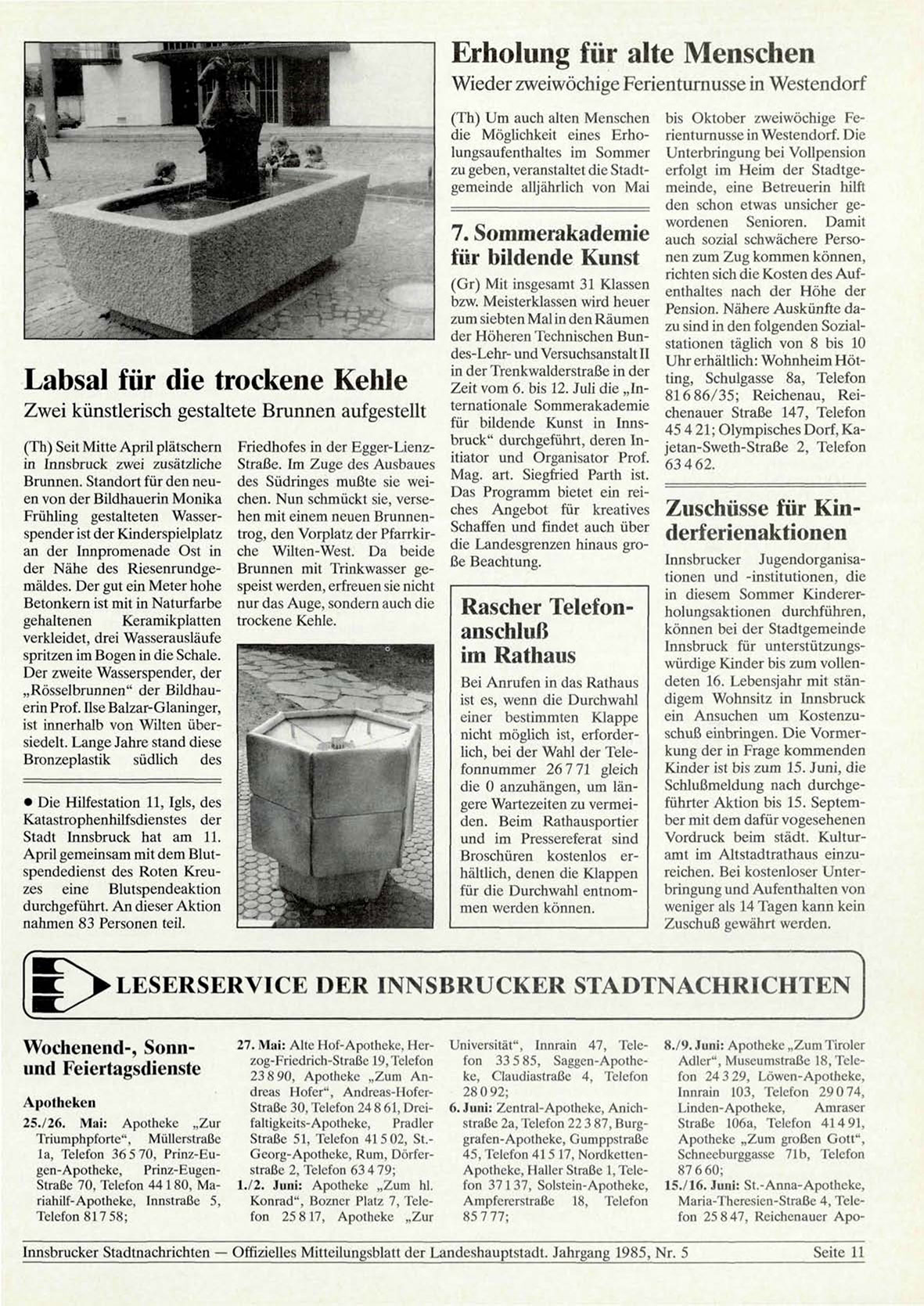 Innsbrucker Stadtnachrichten — Offizielles Mitteilungsblatt der Landeshauptstadt. Jahrgang 1985, Nr. 5
