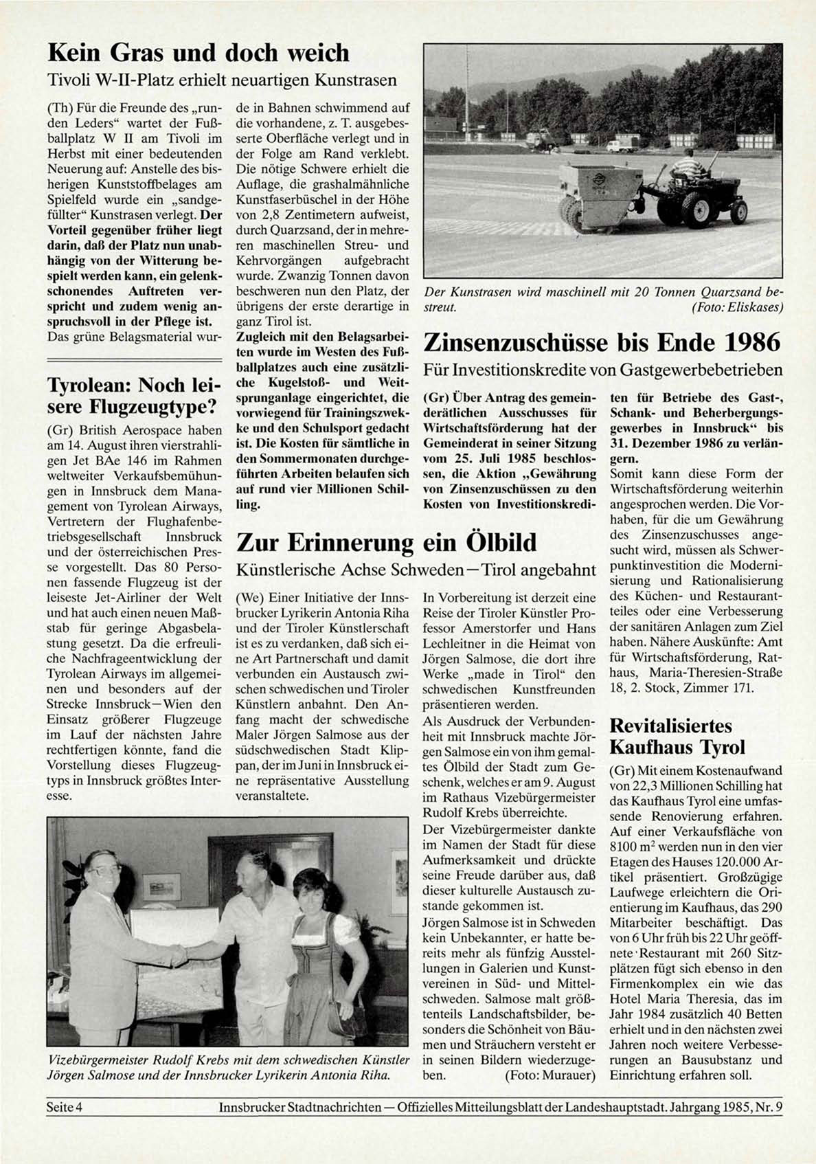 Innsbrucker Stadtnachrichten — Offizielles Mitteilungsblatt der Landeshauptstadt. Jahrgang 1985, Nr. 9