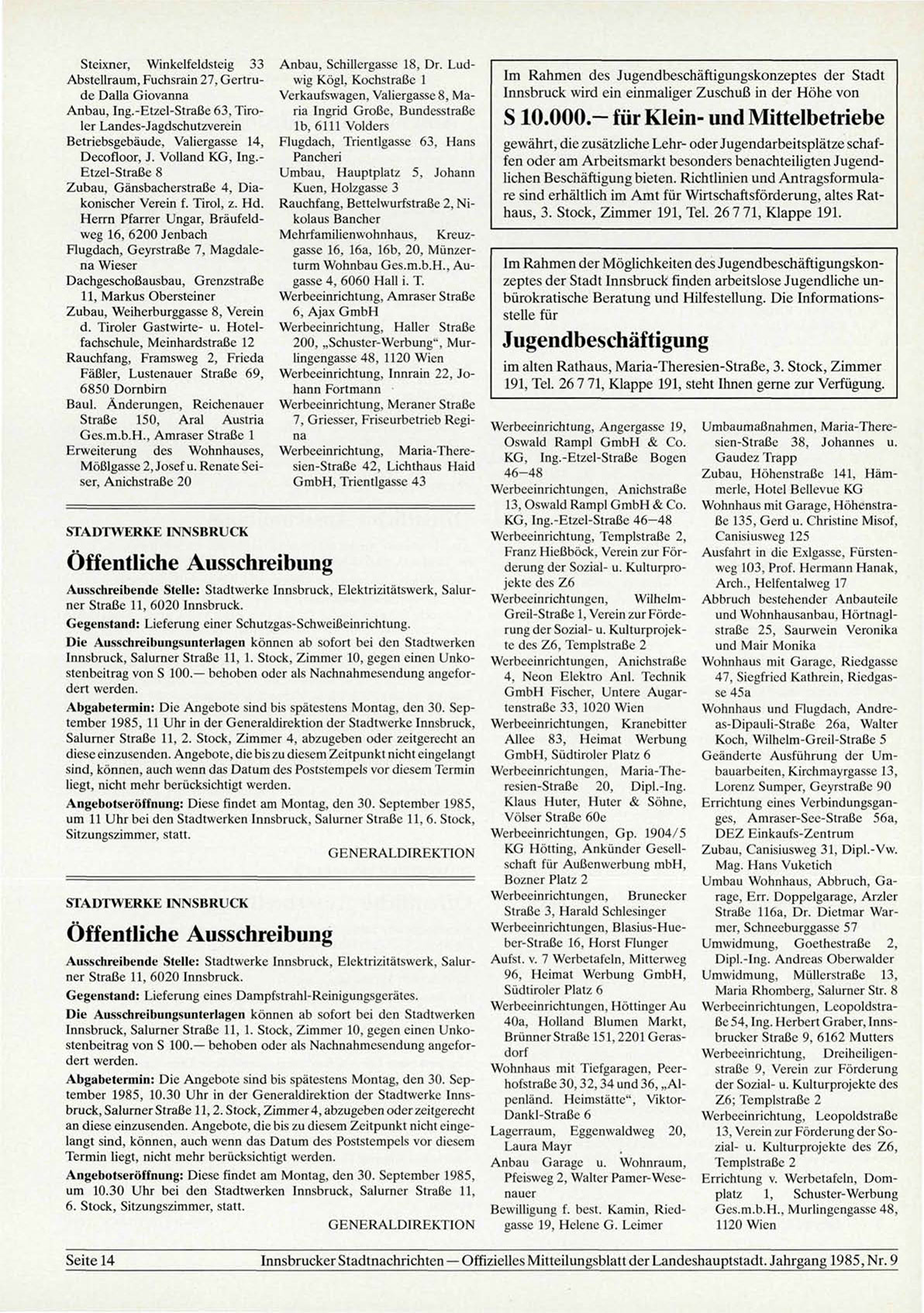 Innsbrucker Stadtnachrichten — Offizielles Mitteilungsblatt der Landeshauptstadt. Jahrgang 1985, Nr. 9