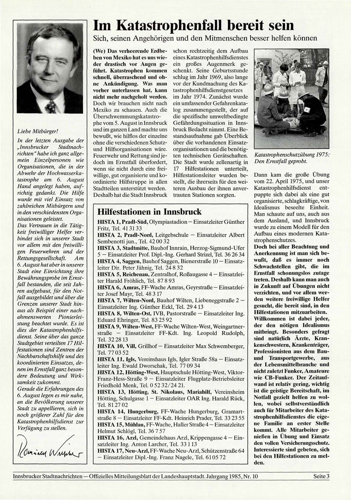 Innsbrucker Stadtnachrichten — Offizielles Mitteilungsblatt der Landeshauptstadt. Jahrgang 1985, Nr. 10