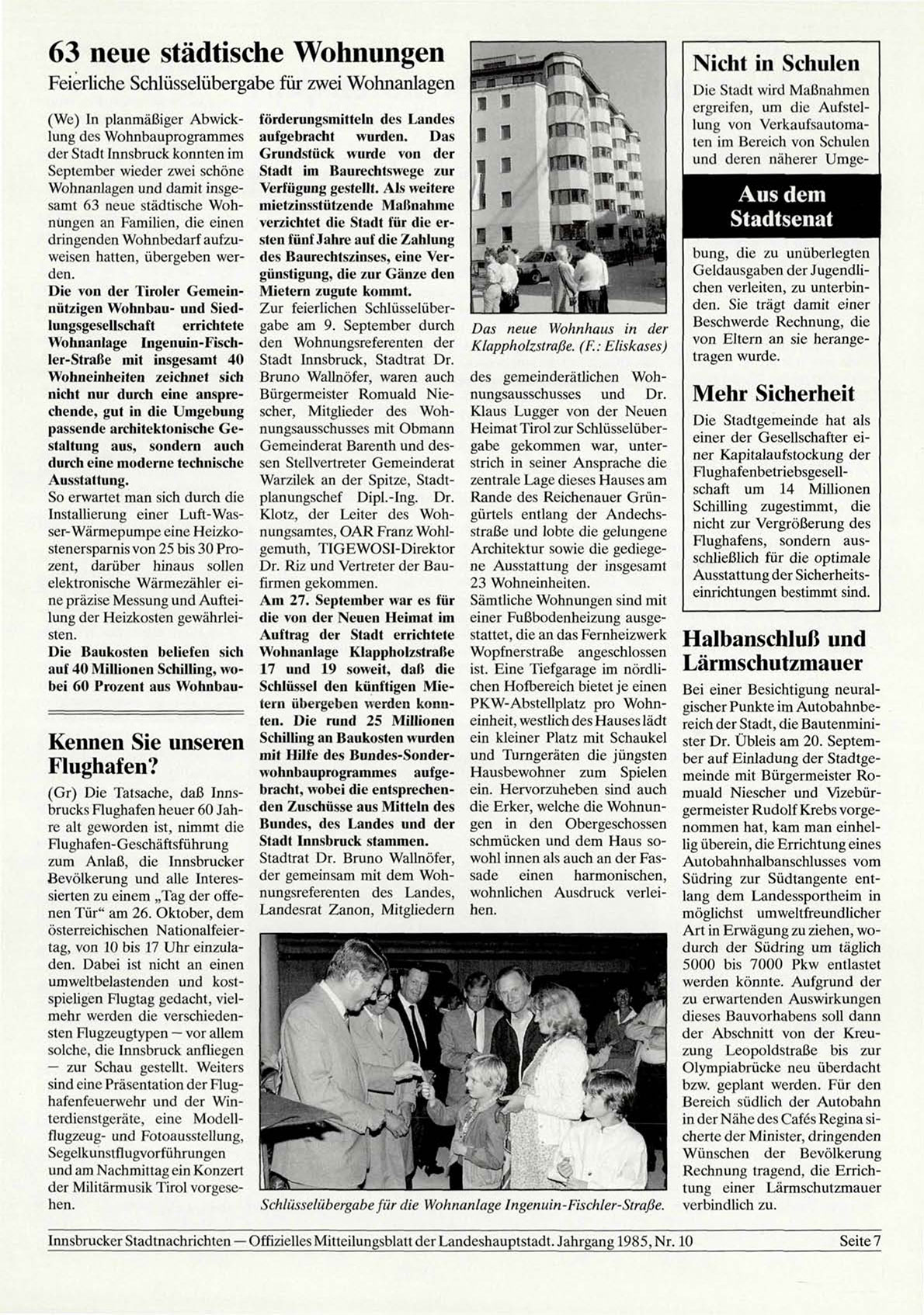 Innsbrucker Stadtnachrichten — Offizielles Mitteilungsblatt der Landeshauptstadt. Jahrgang 1985, Nr. 10