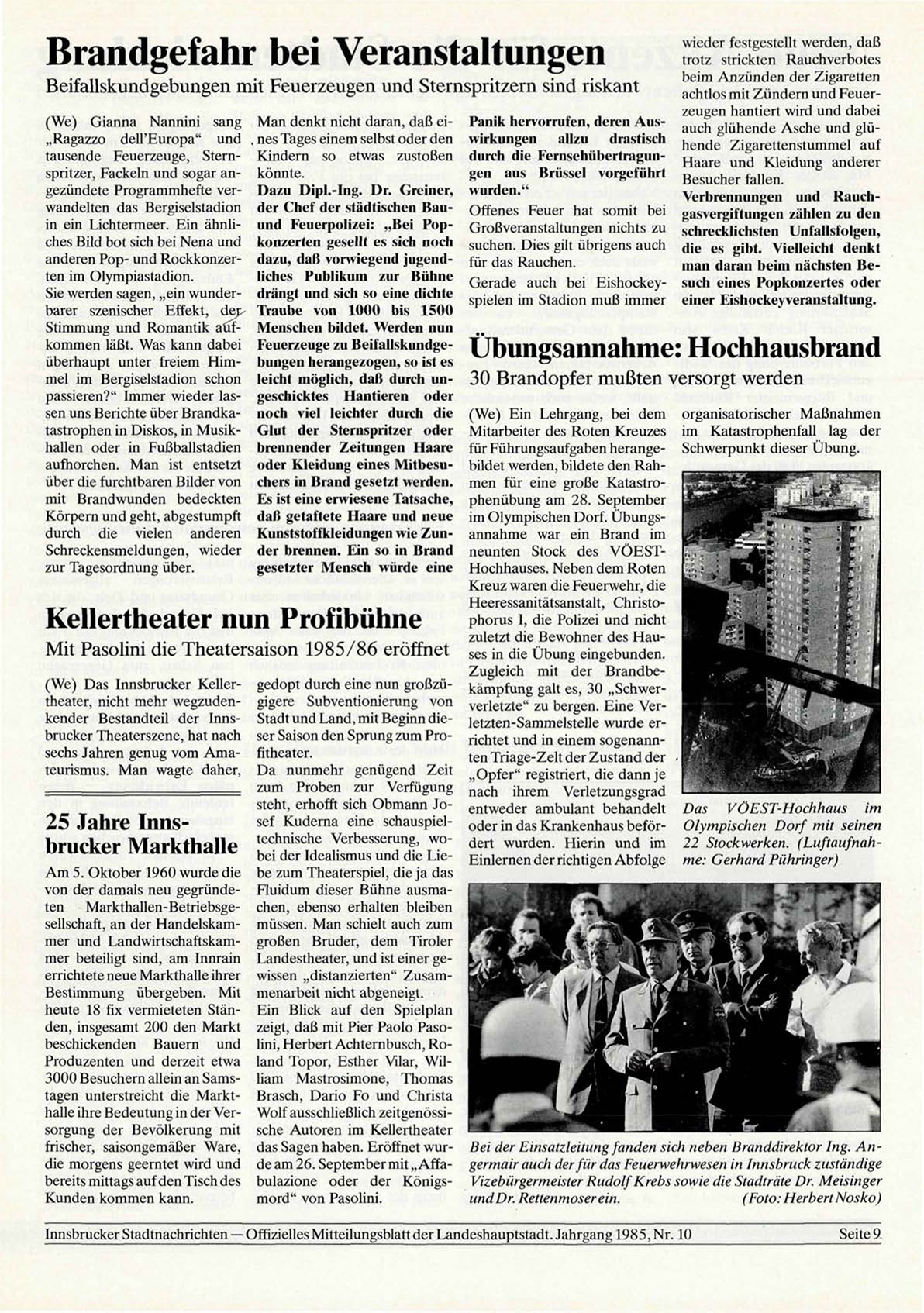 Innsbrucker Stadtnachrichten — Offizielles Mitteilungsblatt der Landeshauptstadt. Jahrgang 1985, Nr. 10