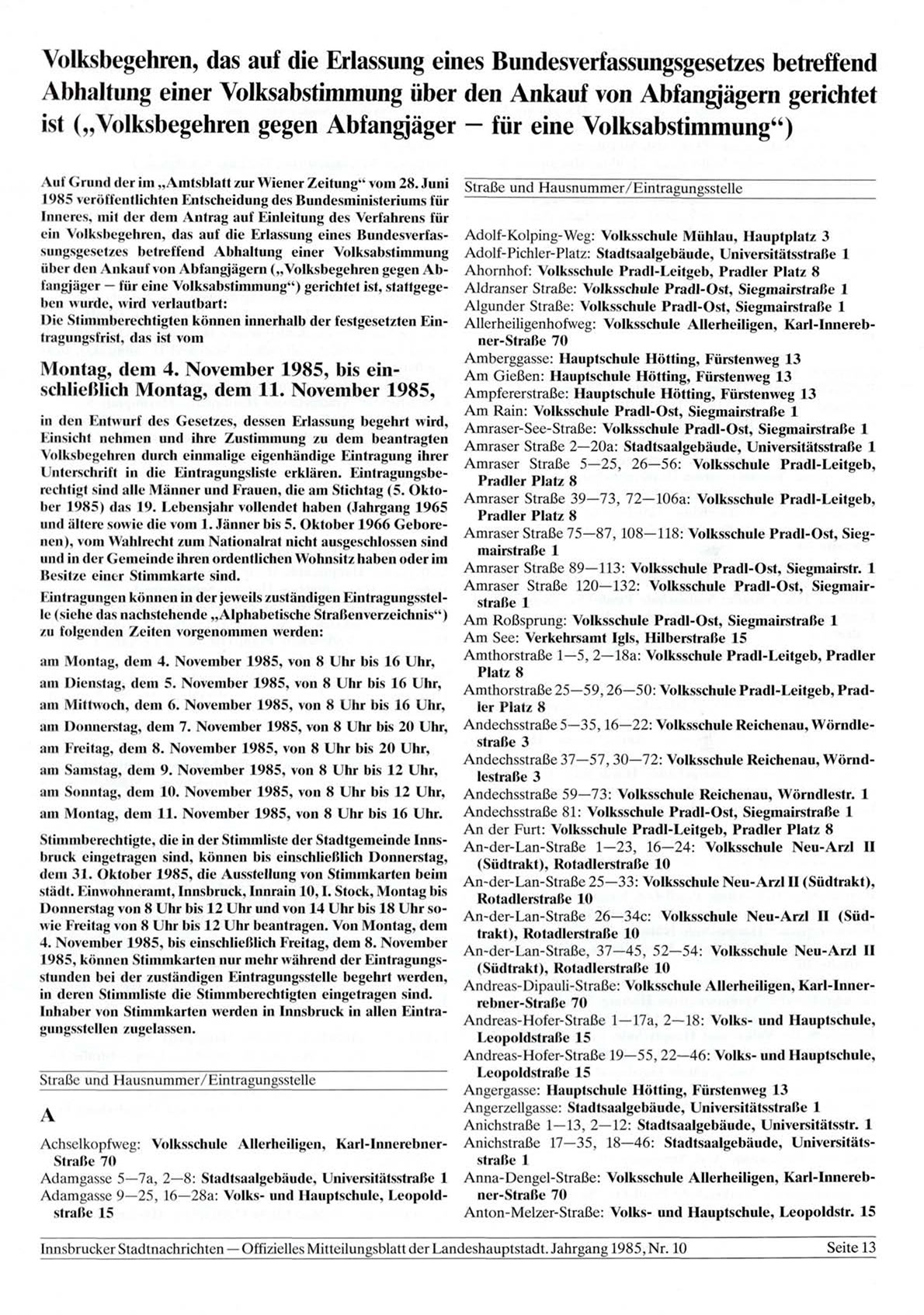 Innsbrucker Stadtnachrichten — Offizielles Mitteilungsblatt der Landeshauptstadt. Jahrgang 1985, Nr. 10