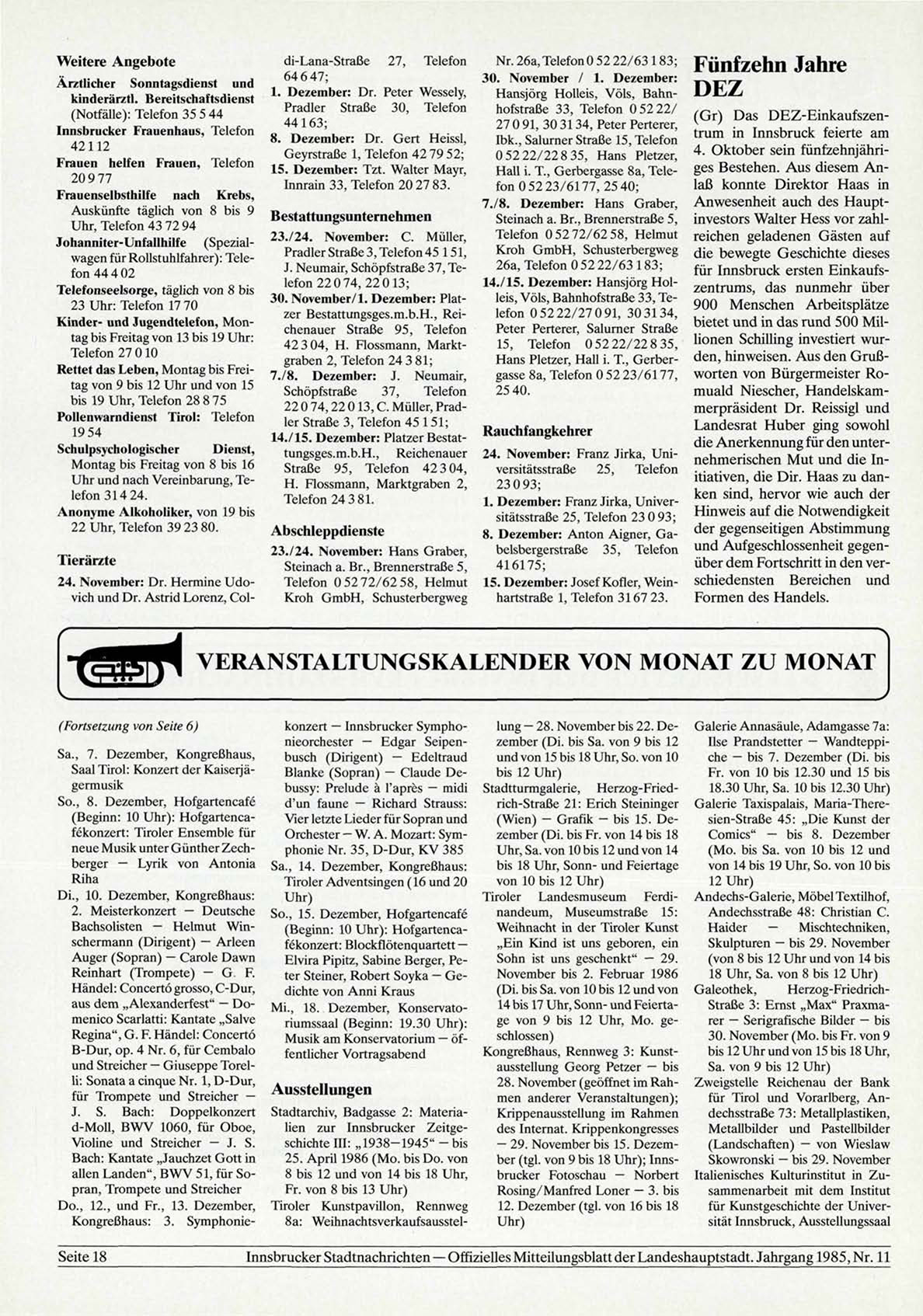 Innsbrucker Stadtnachrichten — Offizielles Mitteilungsblatt der Landeshauptstadt. Jahrgang 1985, Nr. 11